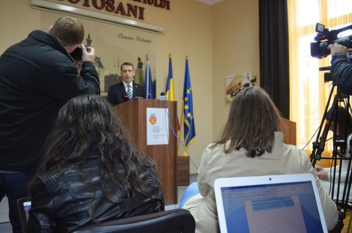 În aceste momente primarul municipiului reședință de județ susține o conferință de presă organizată în premieră în noua sală amenajată la parterul instituției.