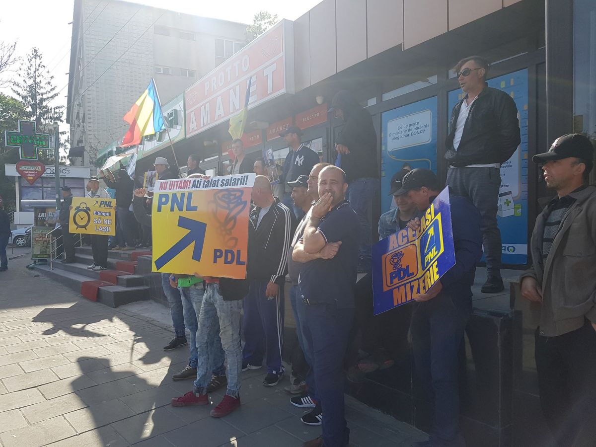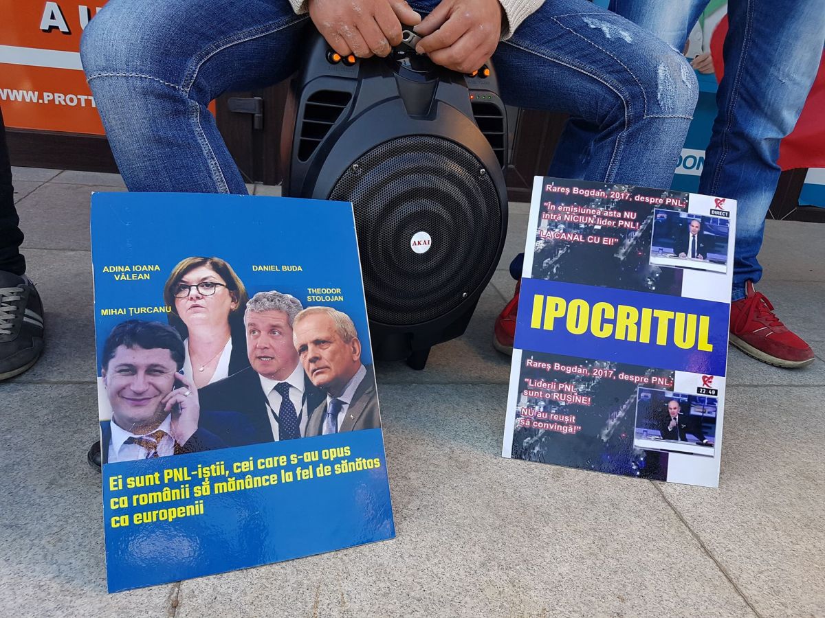 Protestatarii s-au așezat în același loc, respectiv pe treptele fostului Complex Tati din fața Casei de Cultură a Sindicatelor. Ei strigă: „Hoții, hoții” și afișează mai multe lozinci împotriva lui Ludovic Orban, președintele PNL și a lui Rareș Bogdan, candidat pe lista de la alegerile europarlamentare.