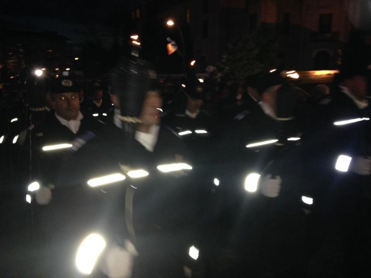 Artiștii s-au oprit din cântat și au așteptat preț de câteva minute, cât parada militară a intrat în perimetrul din Piața Revoluției cu torțele aprinse. Garda de Onoare avea în frunte o fanfară, care a intonat Imnul Național al României. Toți botoșănenii prezenți în fața Consiliului Județean i-au înconjurat pe militari și le-au făcut zeci de poze pentru a imortaliza momentul. După ce momentul intonării imnului s-a încheiat, garda militară a plecat pe traseul strada Cuza-Vodă – Marchian – bulevardul Mihai Eminescu – Pietonalul Unirii – Piața Revoluției,