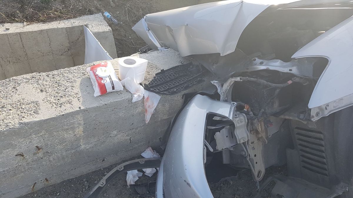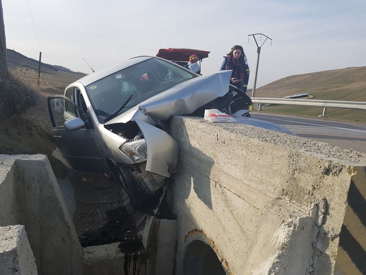 Impactul a fost destul de puternic având în vedere faptul că autoturismul este aproape distrus în partea frontală și a rămas suspendat în șanțul de pe marginea drumului.