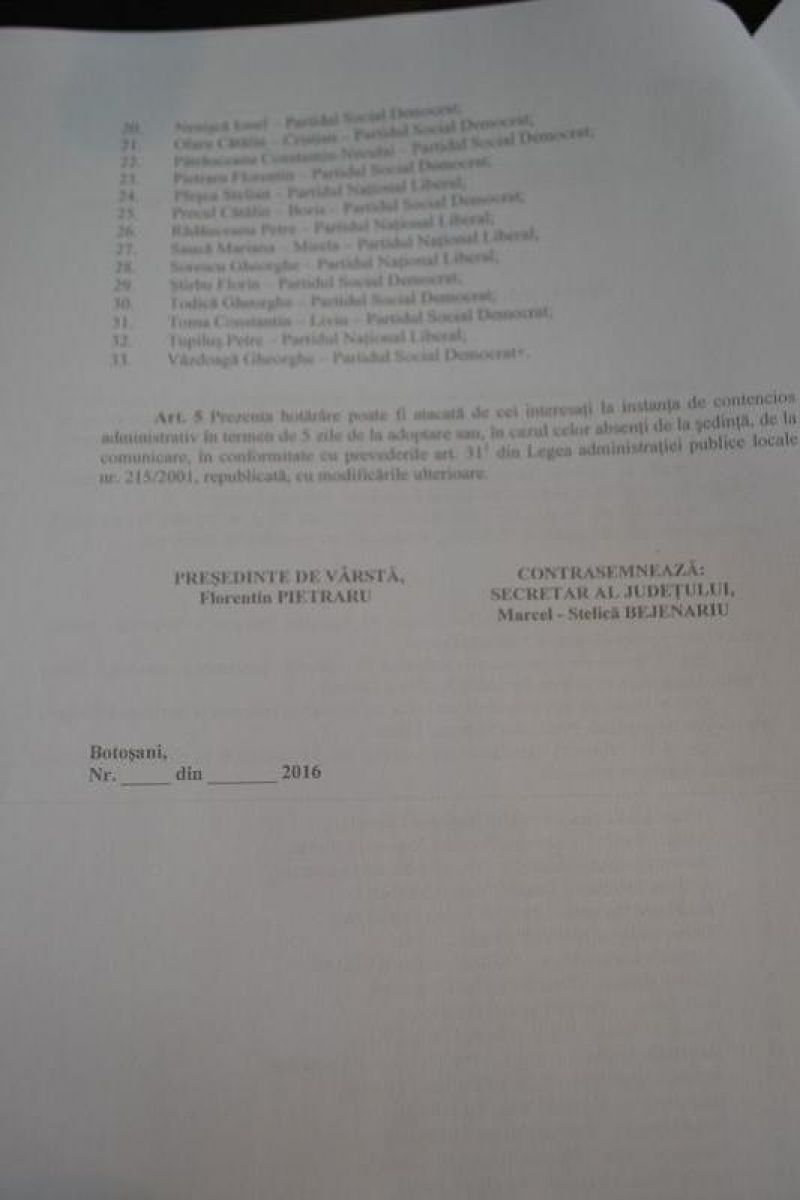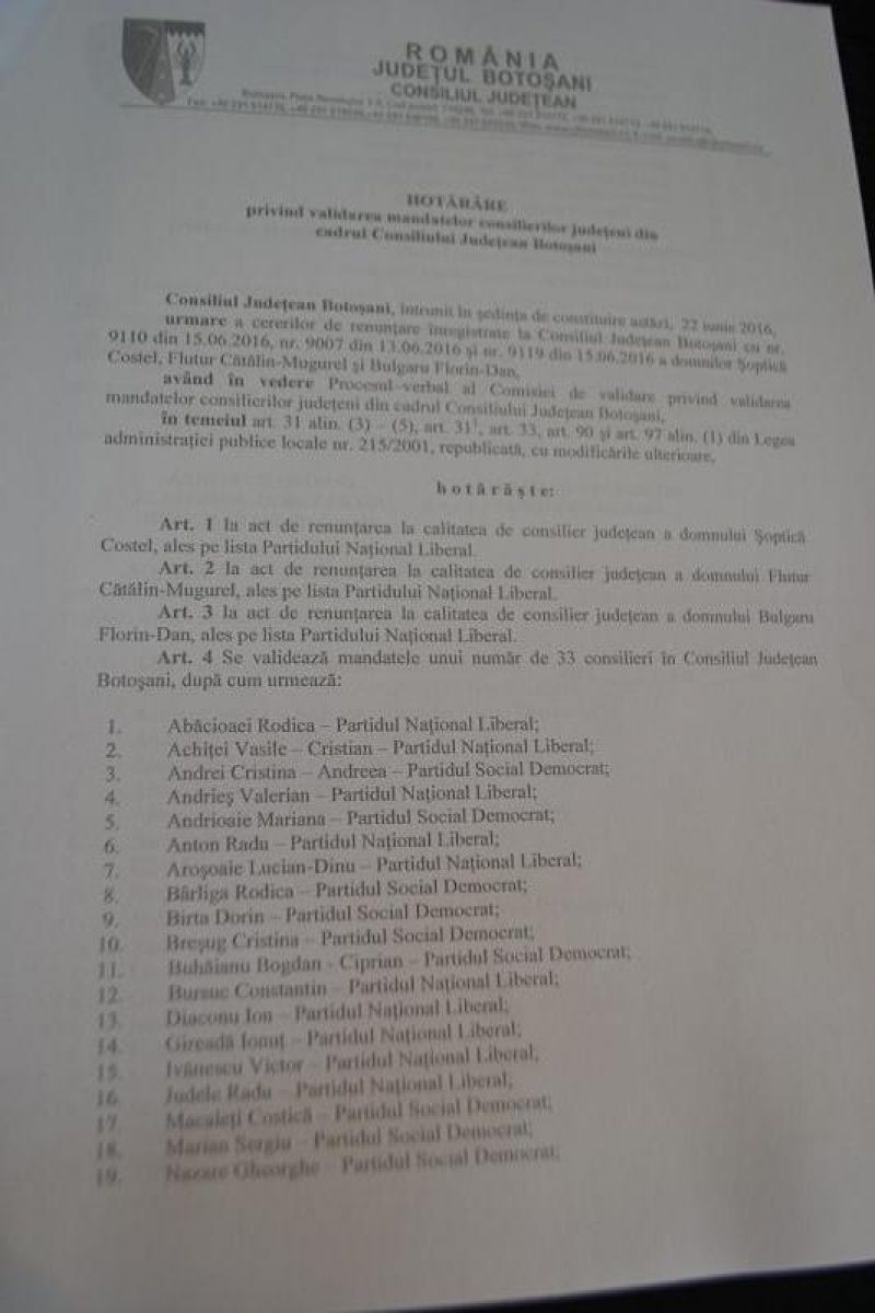 Marii absenți ai acestei ședințe au fost reprezentanții Partidului Național Liberal de la Botoșani.