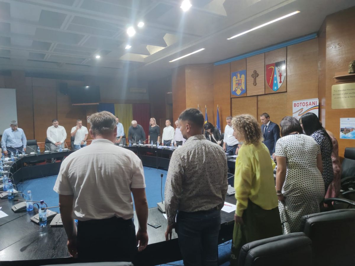 În debutul întrunirii, după intonarea imnurilor, s-a ținut un moment de reculegere pentru Alexandra, tânăra moartă la Maternitatea Botoșani.