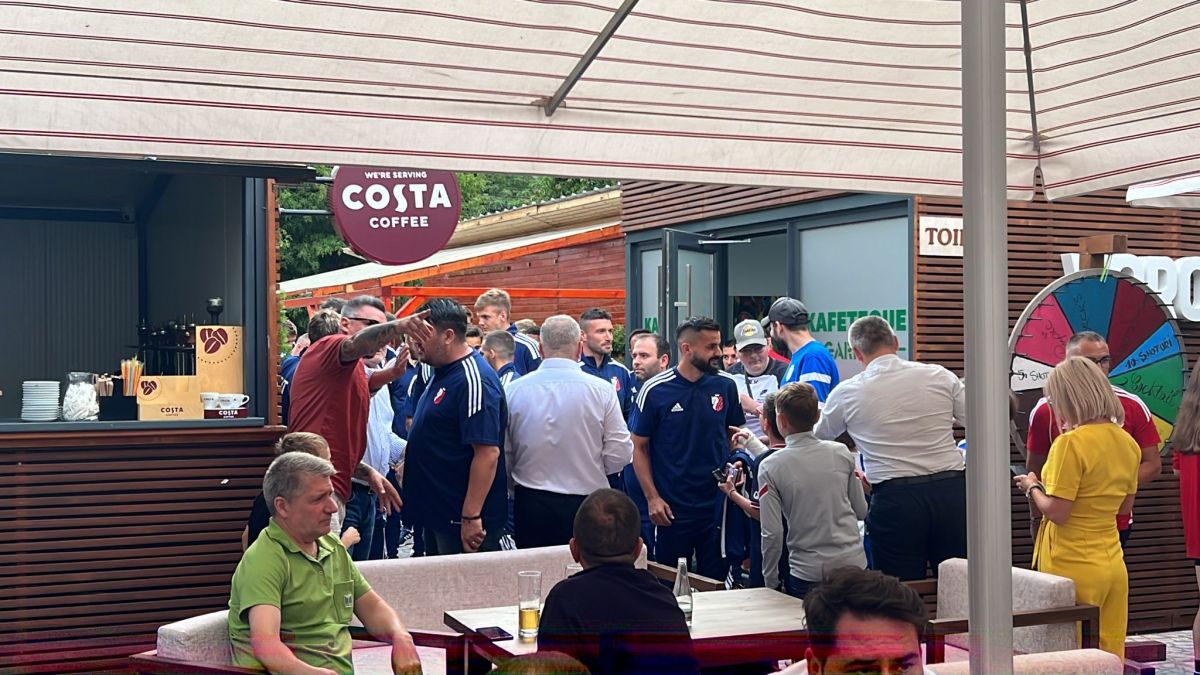 Iar în jurul orei 18:30 au venit în fața suporterilor jucătorii, staff-ul medical și tehnic.