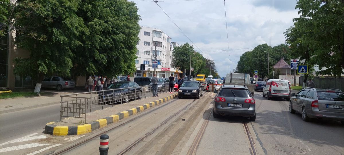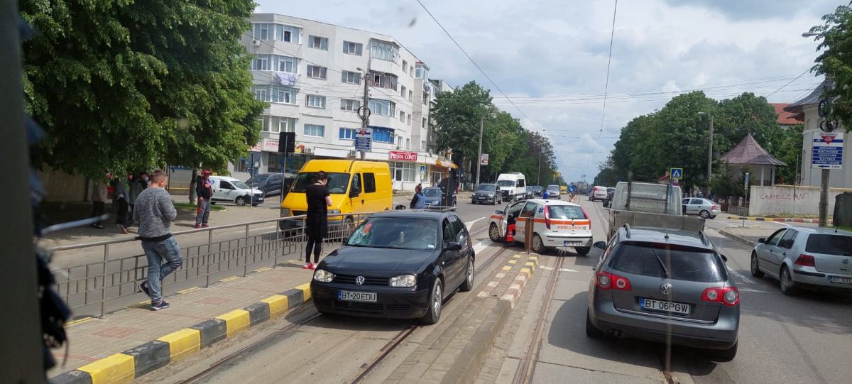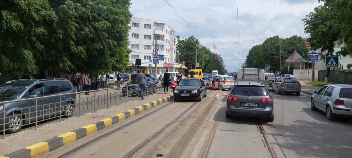 O femeie a fost lovită de un autoturism marca VW Passat al cărei șofer se afla pe banda cu liniile pentru tramvai, deschisă circulației odată cu scoaterea din uz a acestor mijloace de transport și introducerea autobuzelor.