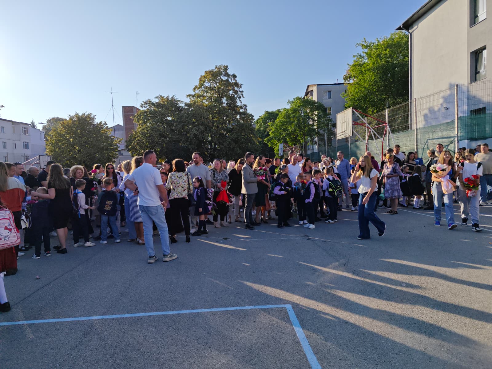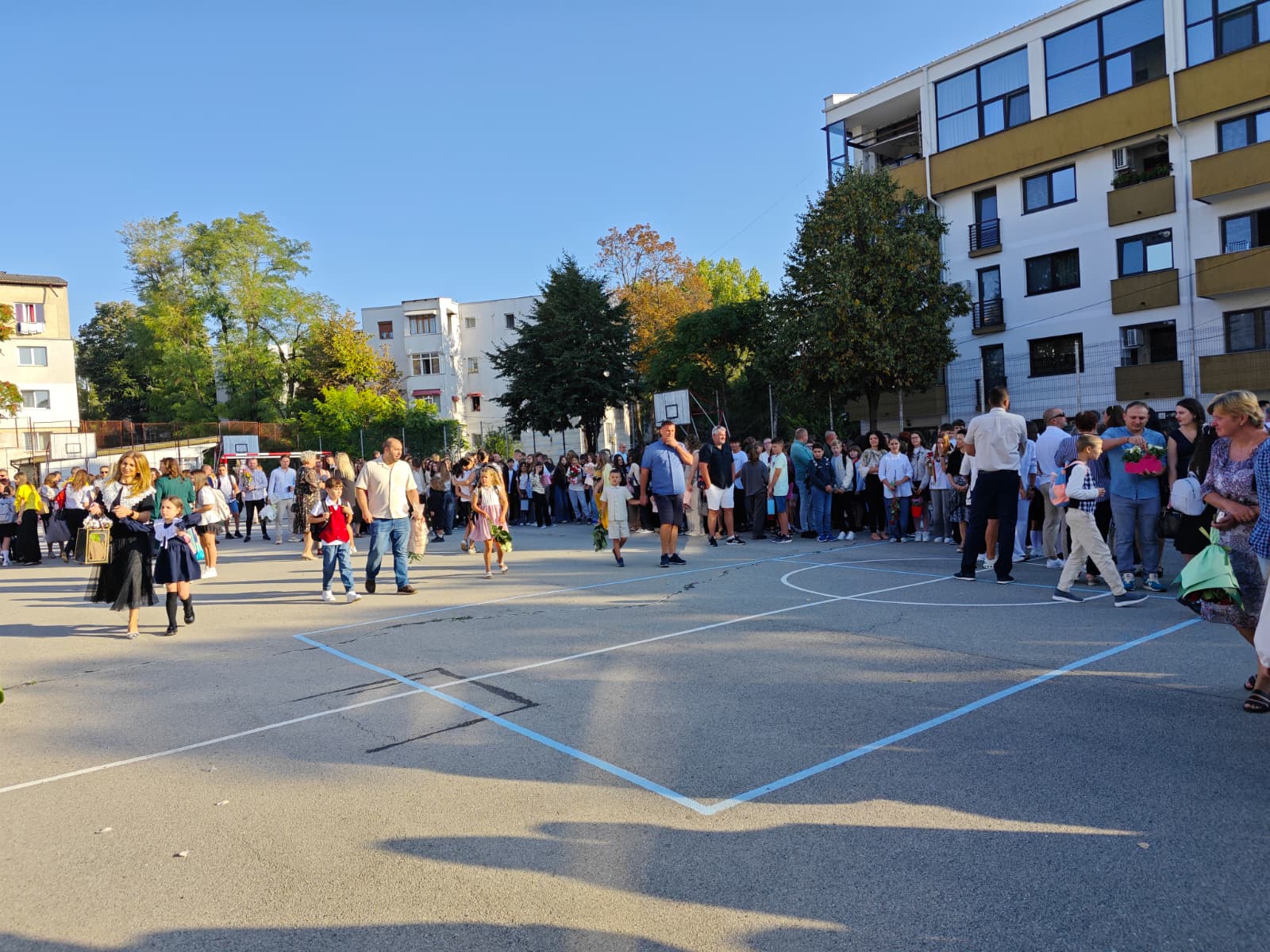 Momentul festiv este organizat în aceste momente pe terenul de sport al școlii.