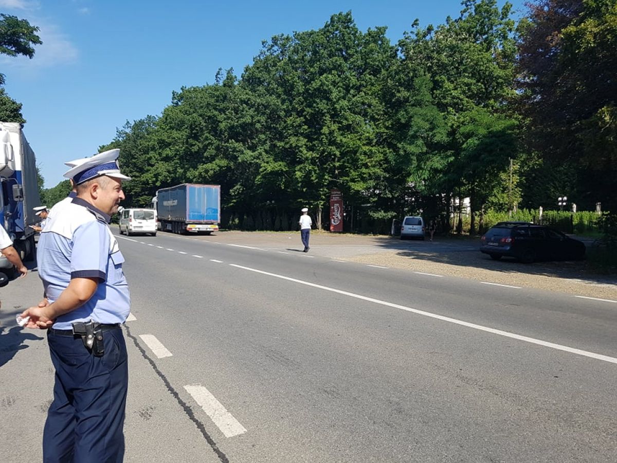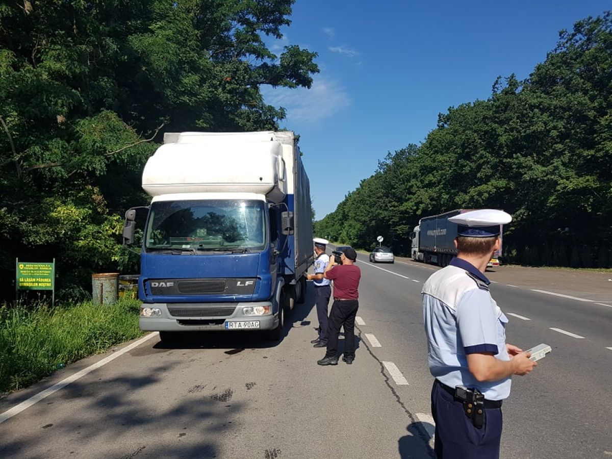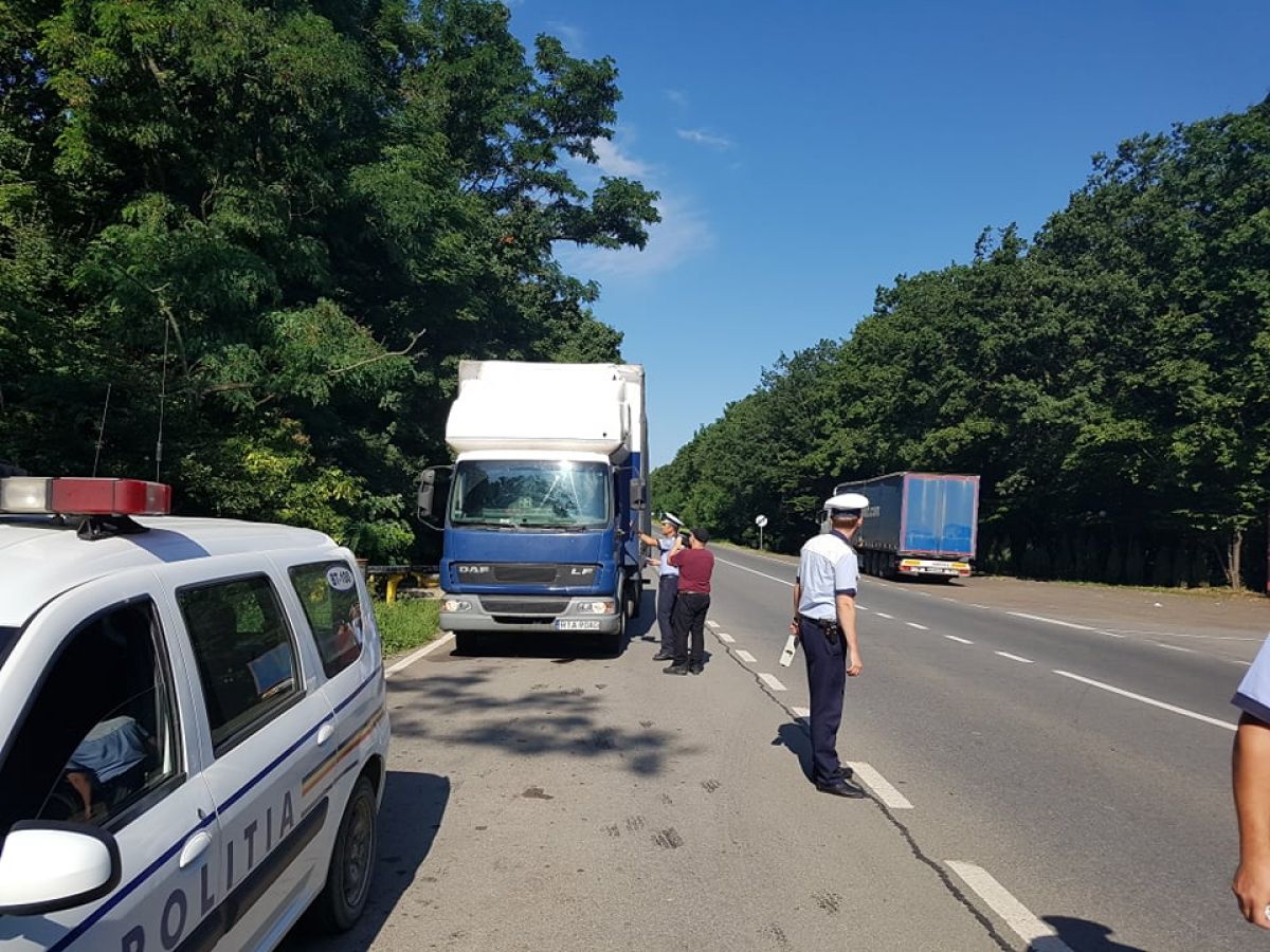 Polițiștii opresc în trafic camioane de marfă sau mașini de transport persoane. Controlul are loc în colaborare cu inspectorii din cadrul ISCTR.