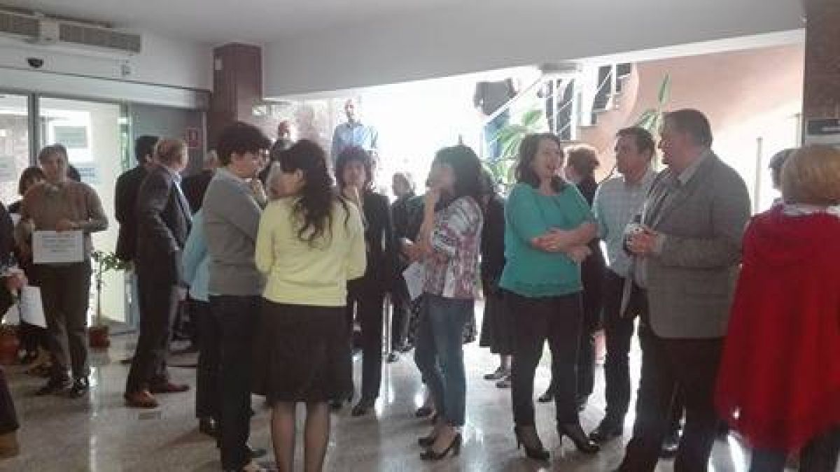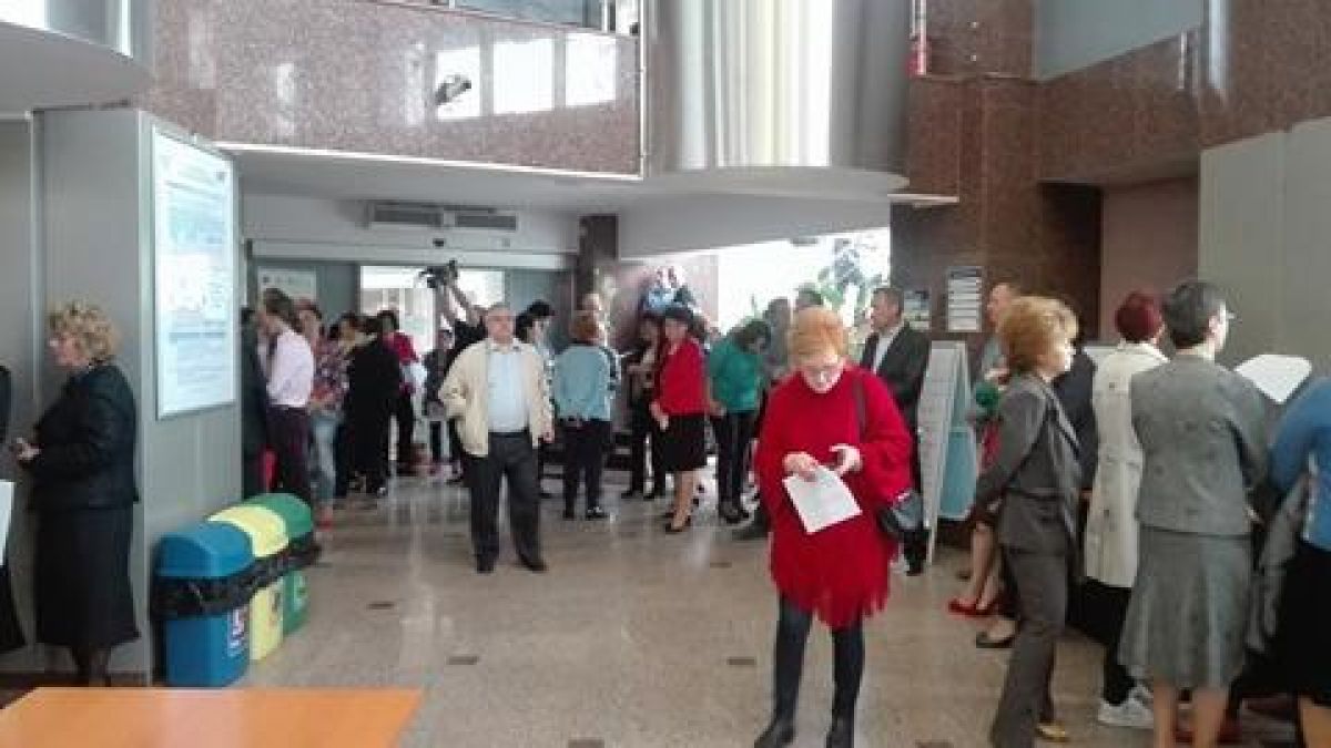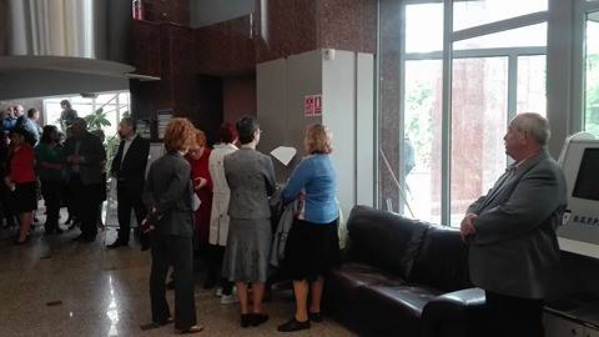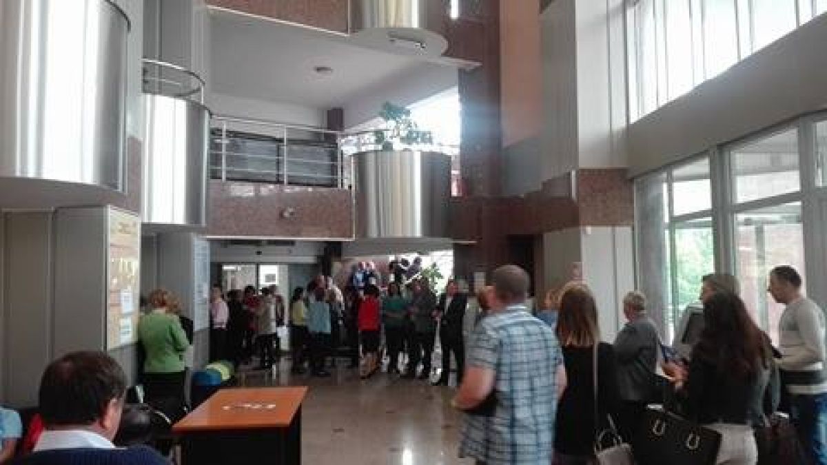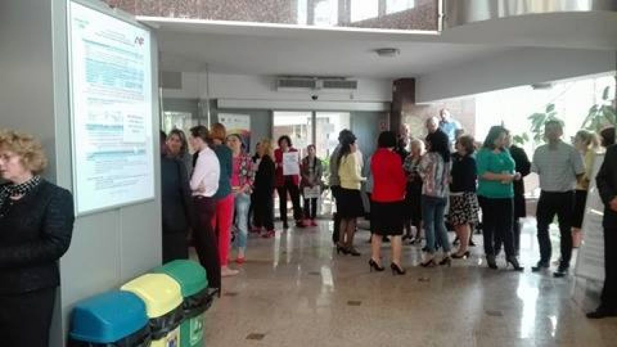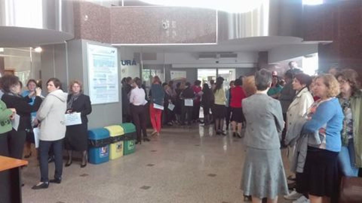 Finanţiştii botoşăneni nu au mai ieşit pe treptele instituţiei în exterior, ci au preferat să se adune în holul mare de la parter.