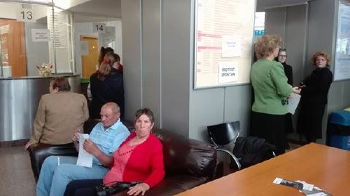 Pe uşa de la Finanțe au fost lipite afişe prin care este anunțat protestul spontan iar în interior nu se va lucra cu publicul în intervalul orar: 10.00 – 12.00.