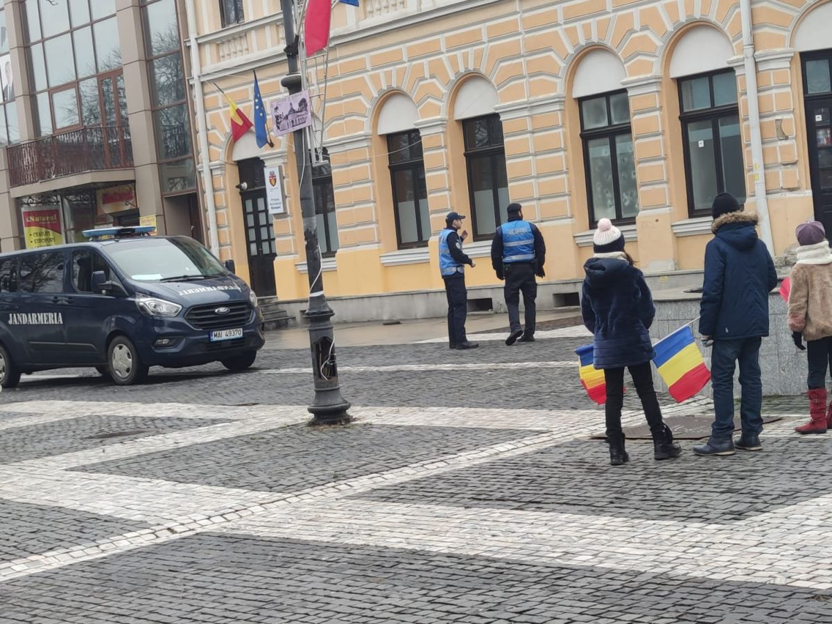 În zonă sunt numeroase forțe de ordine, polițiști, jandarmi și polițiști locali.