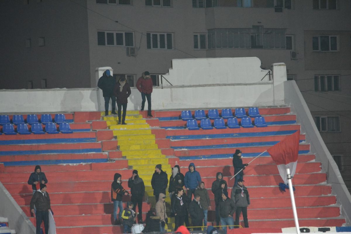 Pe o asemenea vreme publicul este însă cât se poate de cald, își încurajează echipa favorită și nu uită să plătească prin ceva invective tratamentul de care moldovenii au avut parte în tur, în Oltenia.