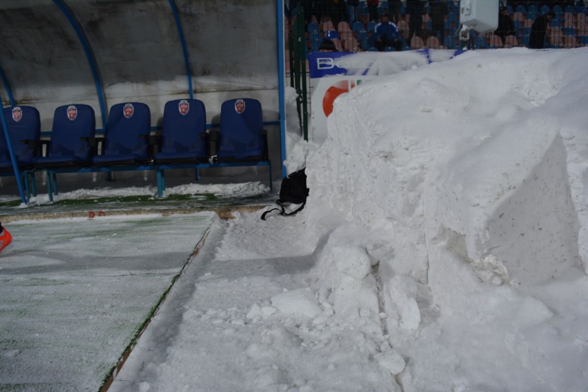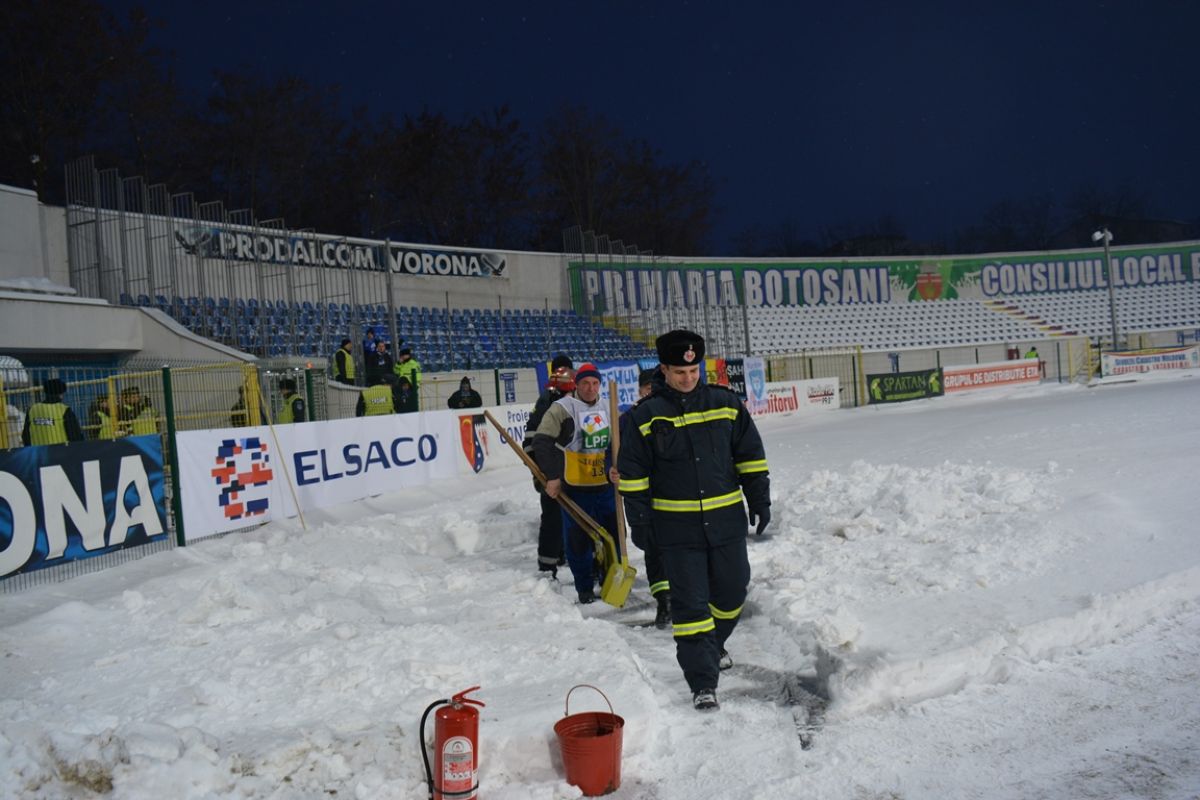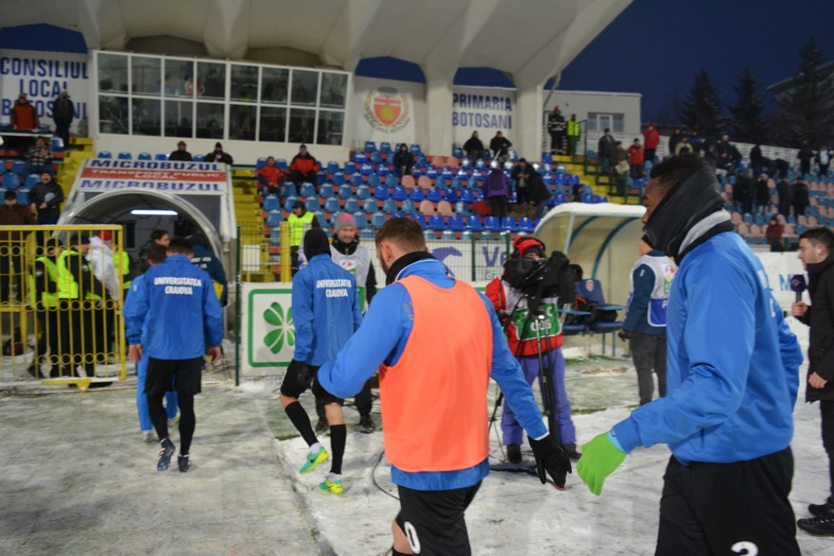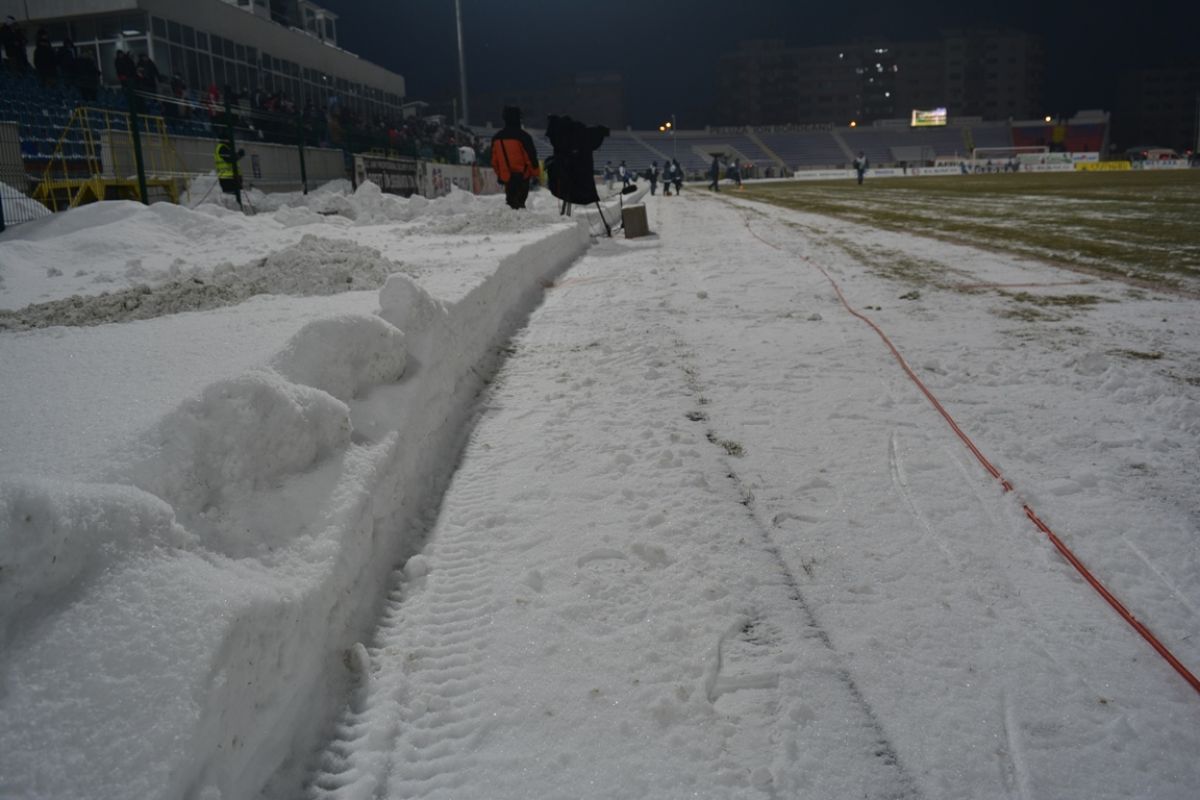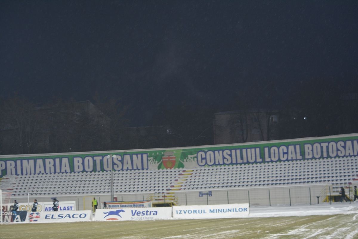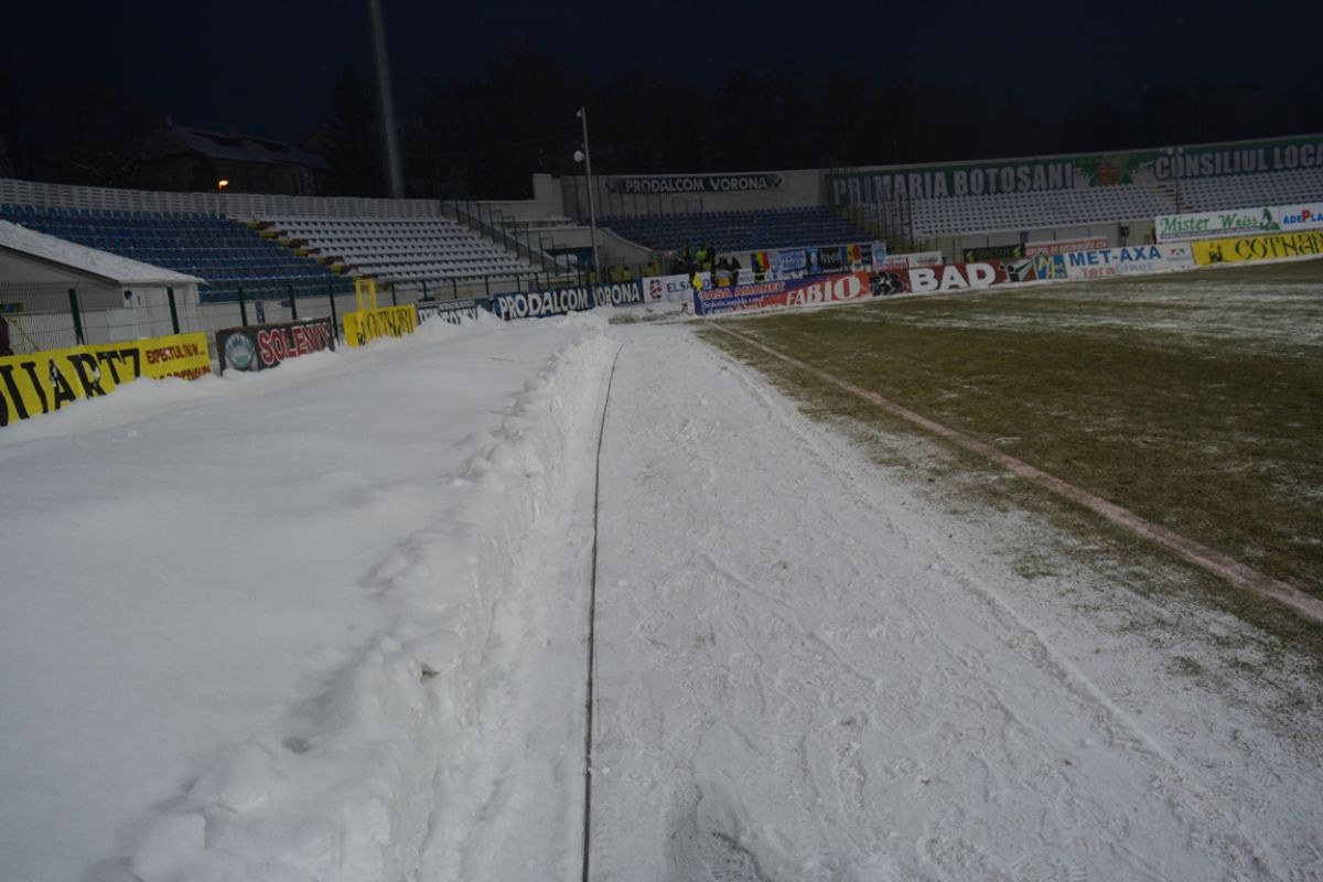 Minus 8,4 grade și un strat mediu de 21 de centrimetri de zăpadă sunt sâmbătă la Botoșani, potrivit Administrației Naționale de Meteorologie. Și totuși, la ora 18:00 arbitrul central Marius Avram a dat fluierul de start al meciului FC Botoșani – CSU Craiova din cadrul etapei a XXIII –a din Liga 1.