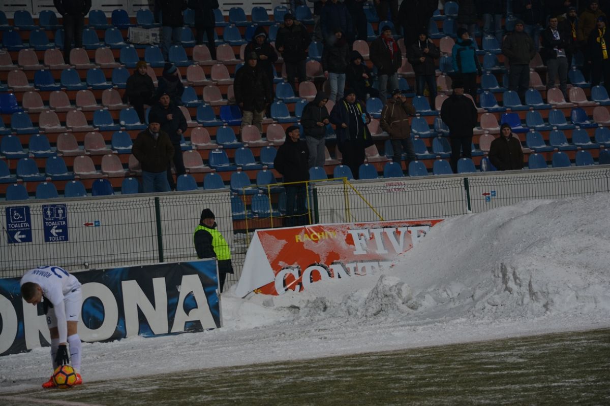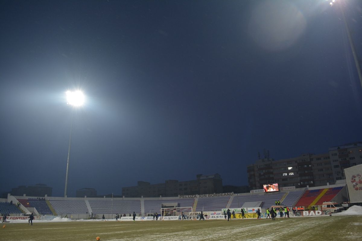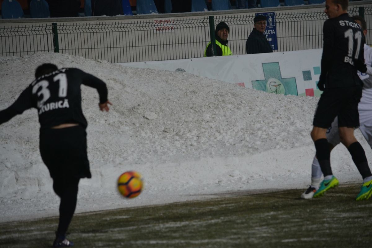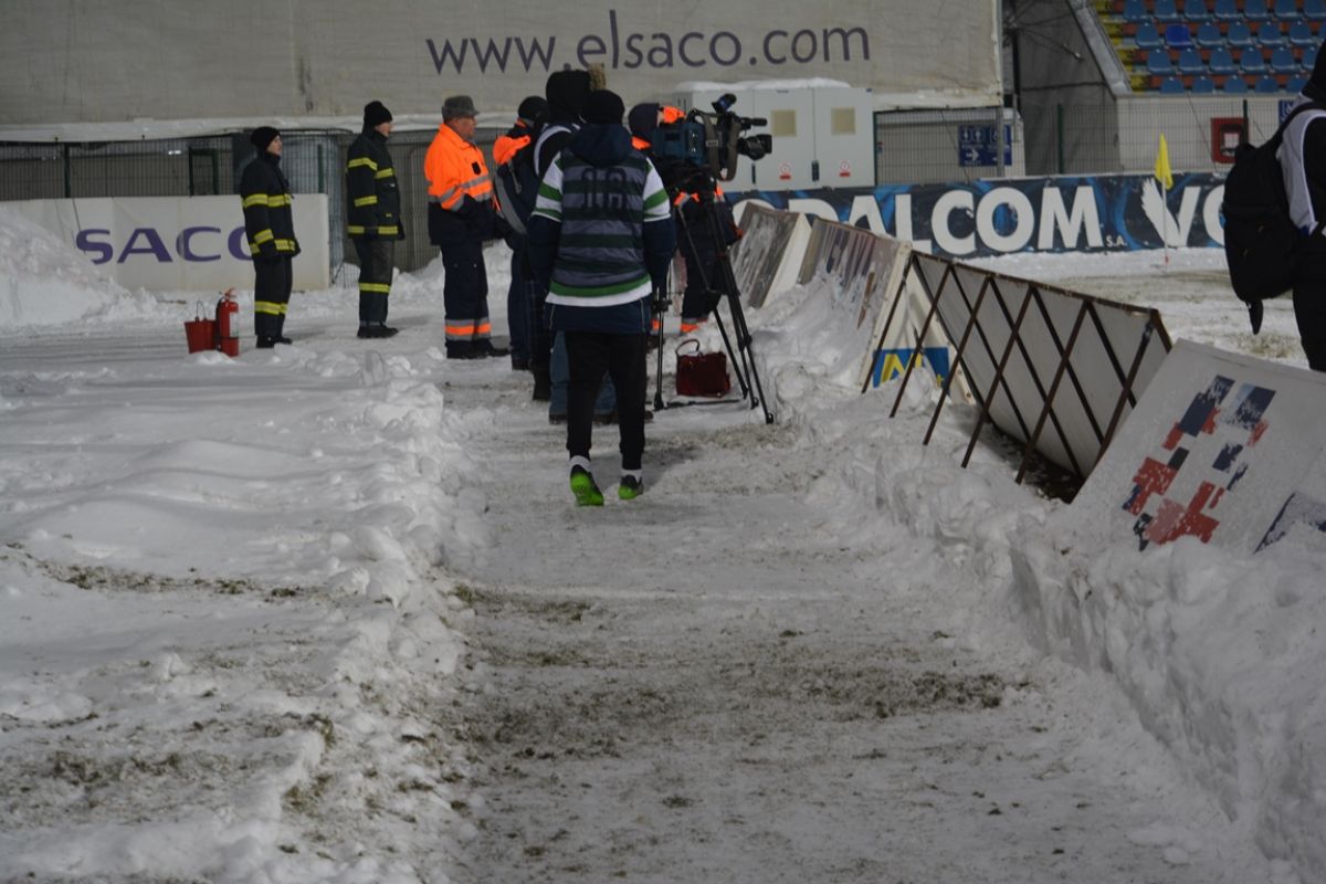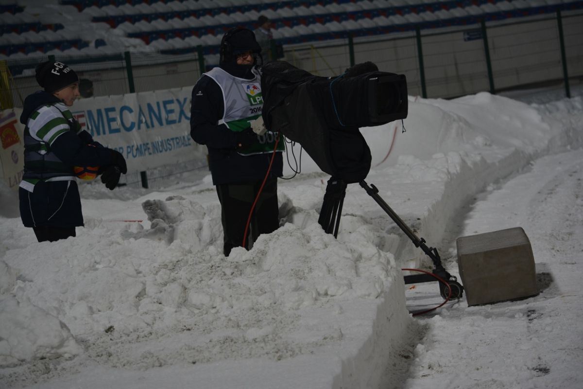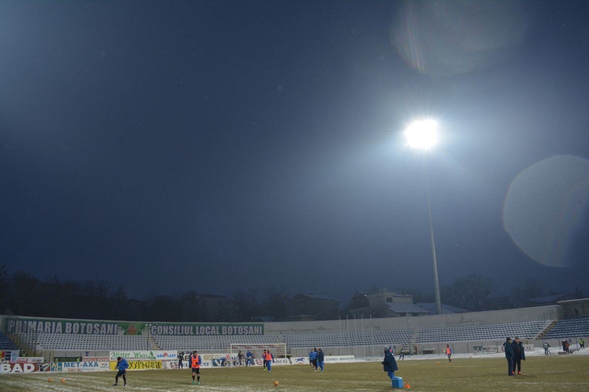 Minus 8,4 grade și un strat mediu de 21 de centrimetri de zăpadă sunt sâmbătă la Botoșani, potrivit Administrației Naționale de Meteorologie. Și totuși, la ora 18:00 arbitrul central Marius Avram a dat fluierul de start al meciului FC Botoșani – CSU Craiova din cadrul etapei a XXIII –a din Liga 1.
