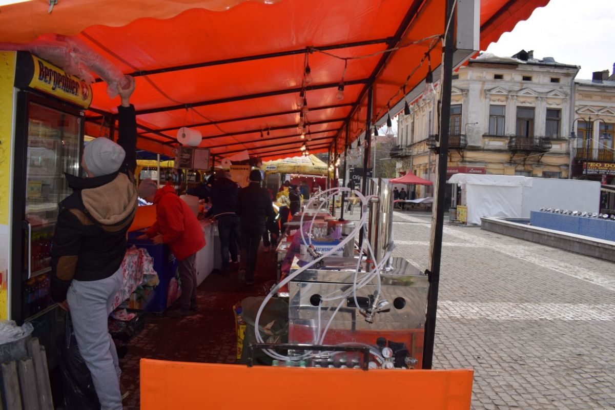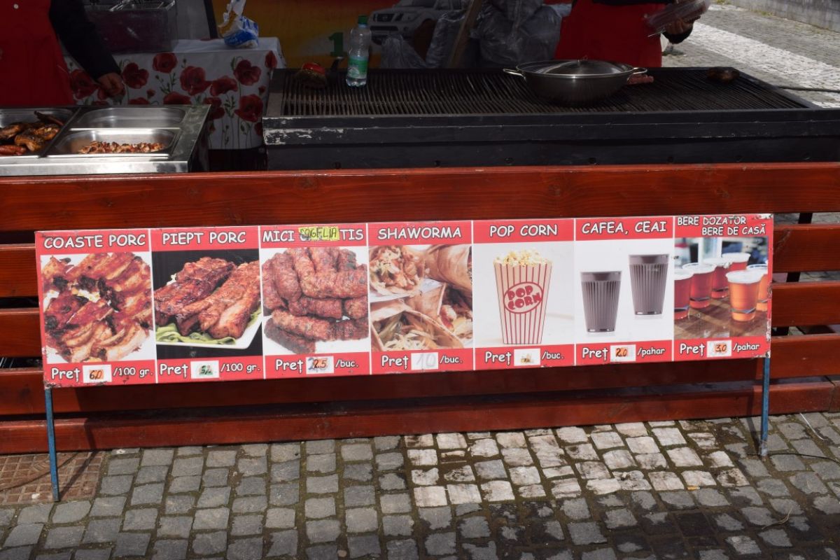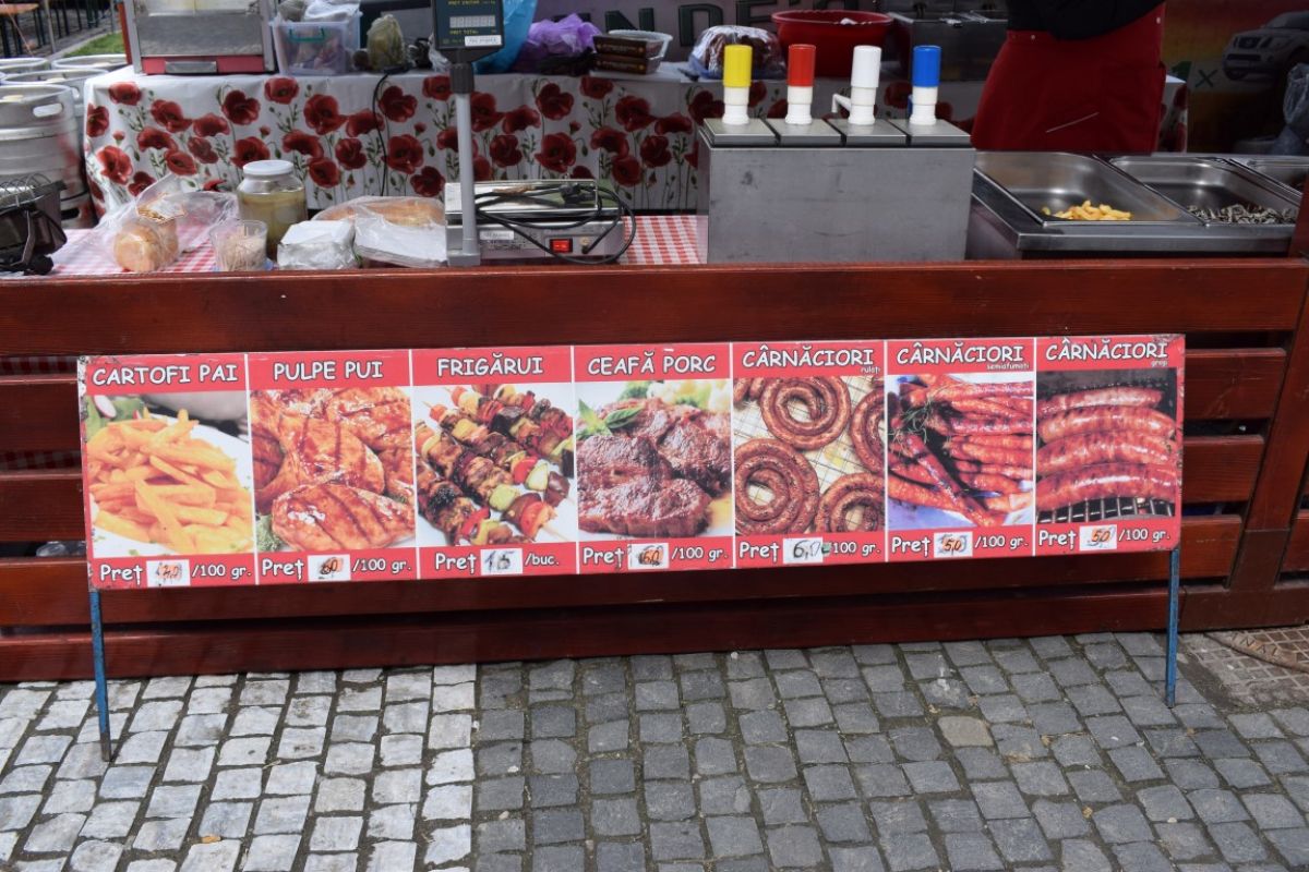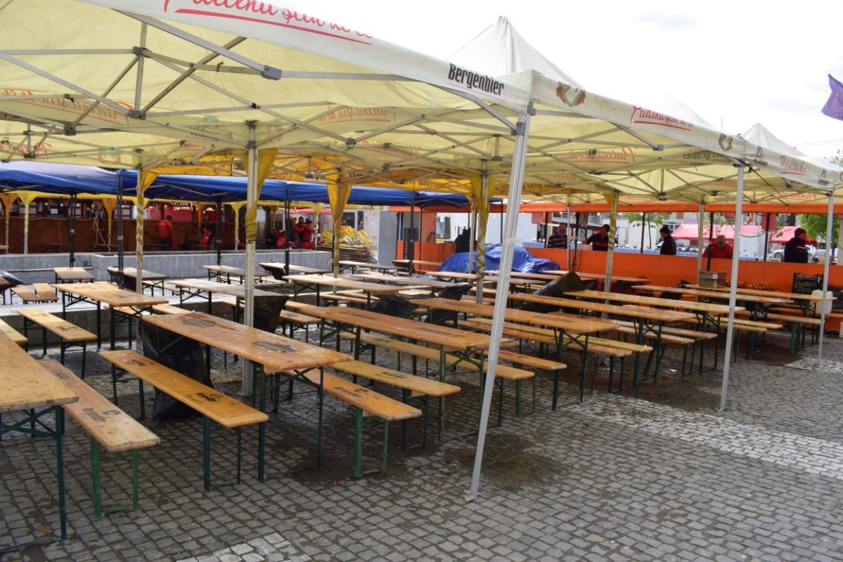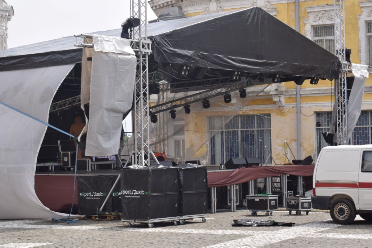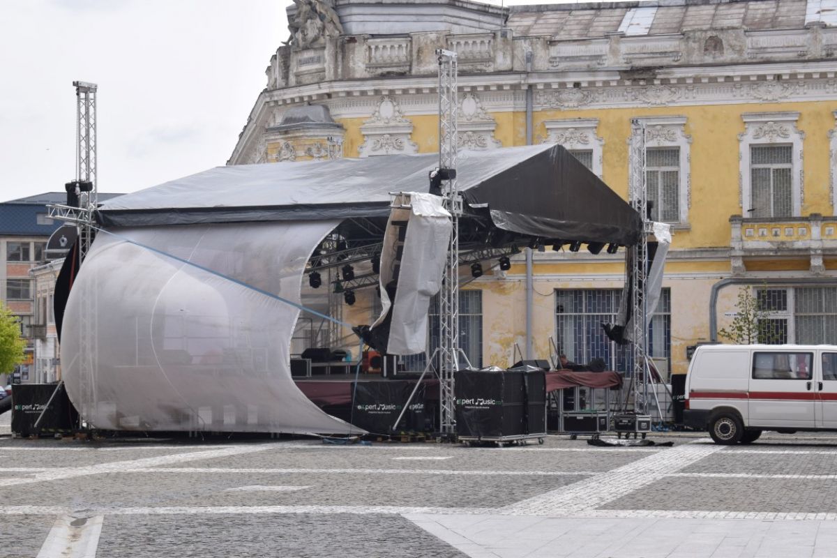 Parcă și vremea s-a îmbunat și un soare călduț a învăluit oamenii care, înfofoliți lucrează la scenă sau la terasele din perimetrul alocat acestui eveniment. Vântul strică puțin planurile comercianților, mai ales a celor care au aprins deja focul la grătare și au gătit primii mici sau grătare din carne de porc și pui.