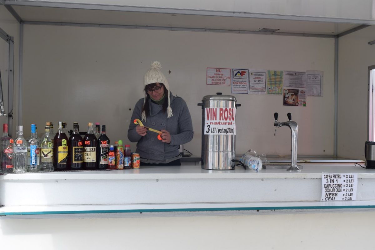 O doamnă prevăzătoare a adus și vin fiert, fiind pregătită și pentru temperaturi scăzute.