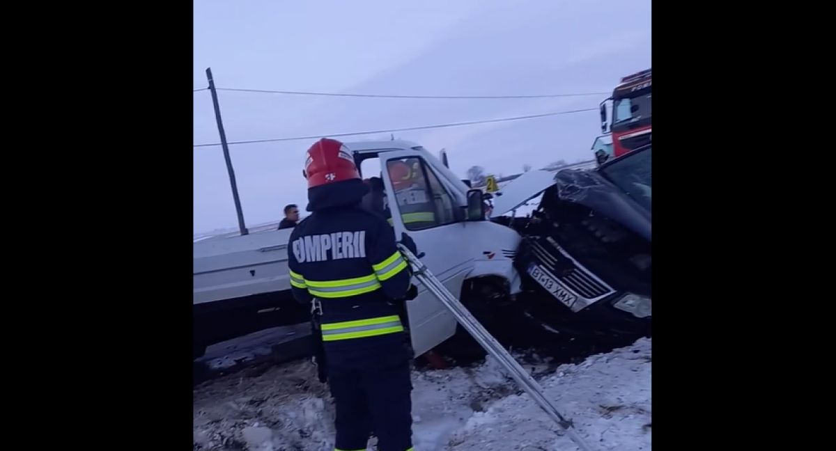 Din primele informații, au fost implicate un autoturism marca VW și o autoutilitară.