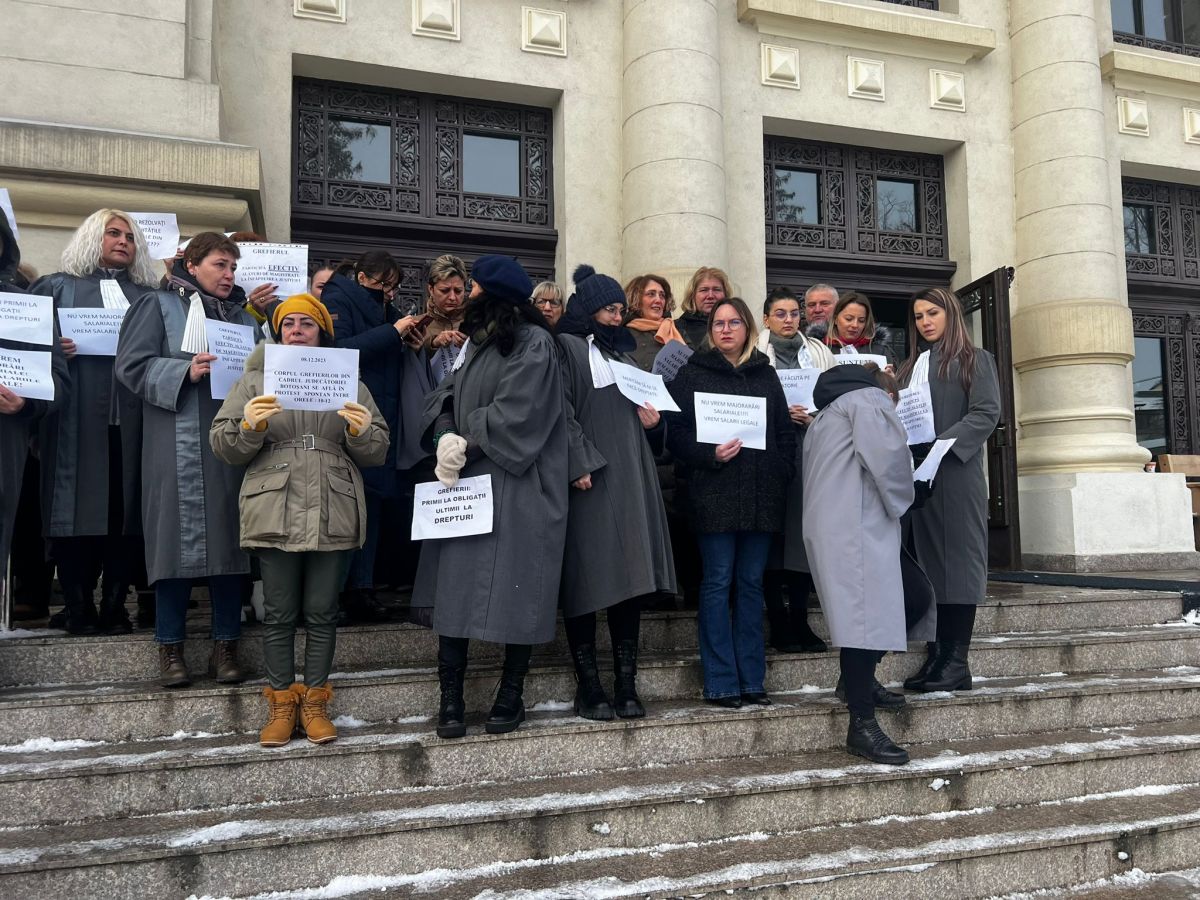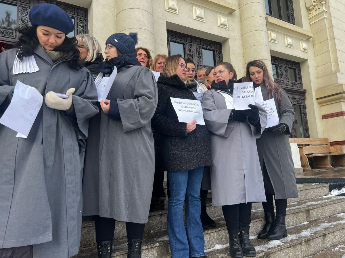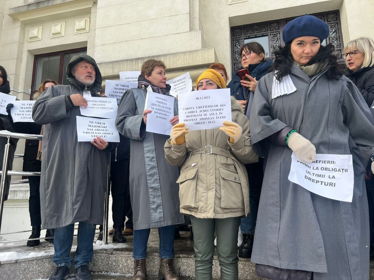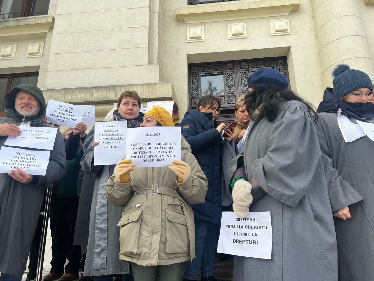 Zeci de grefieri de la Judecătoria Botoșani și Tribunal protestează în aceste momente.