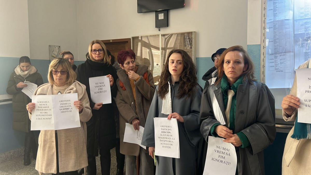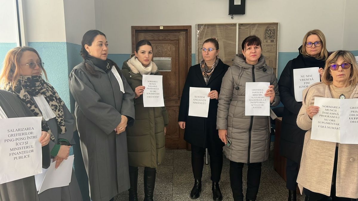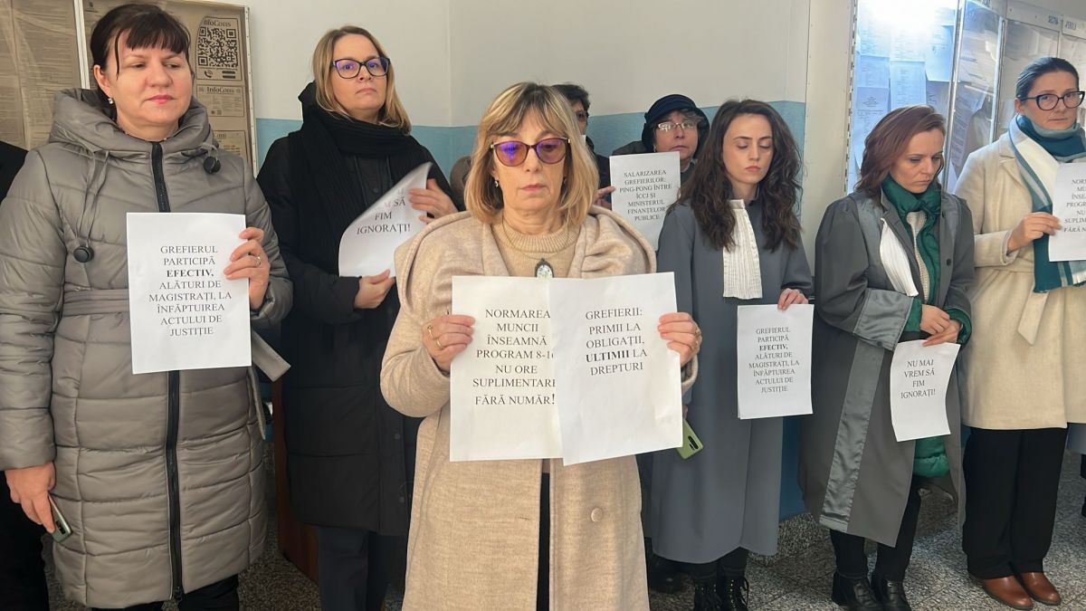 Grefierii protestează la instanțele din Botoșani: Primii la obligații, ultimii la drepturiFOTO & VIDEO