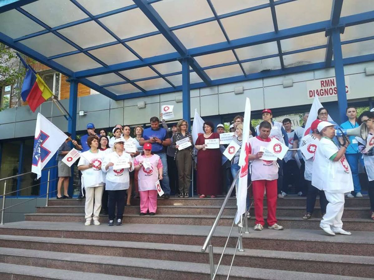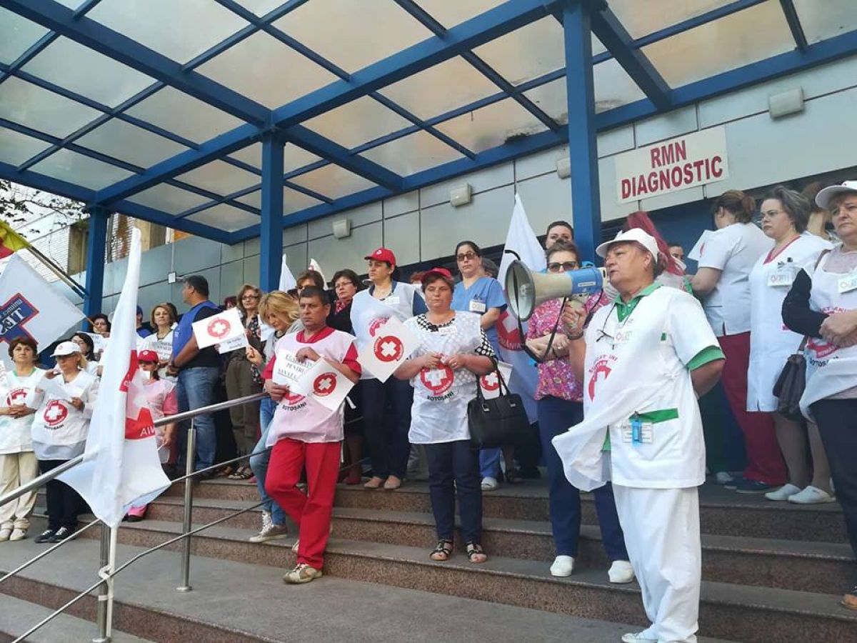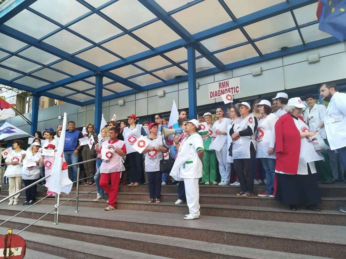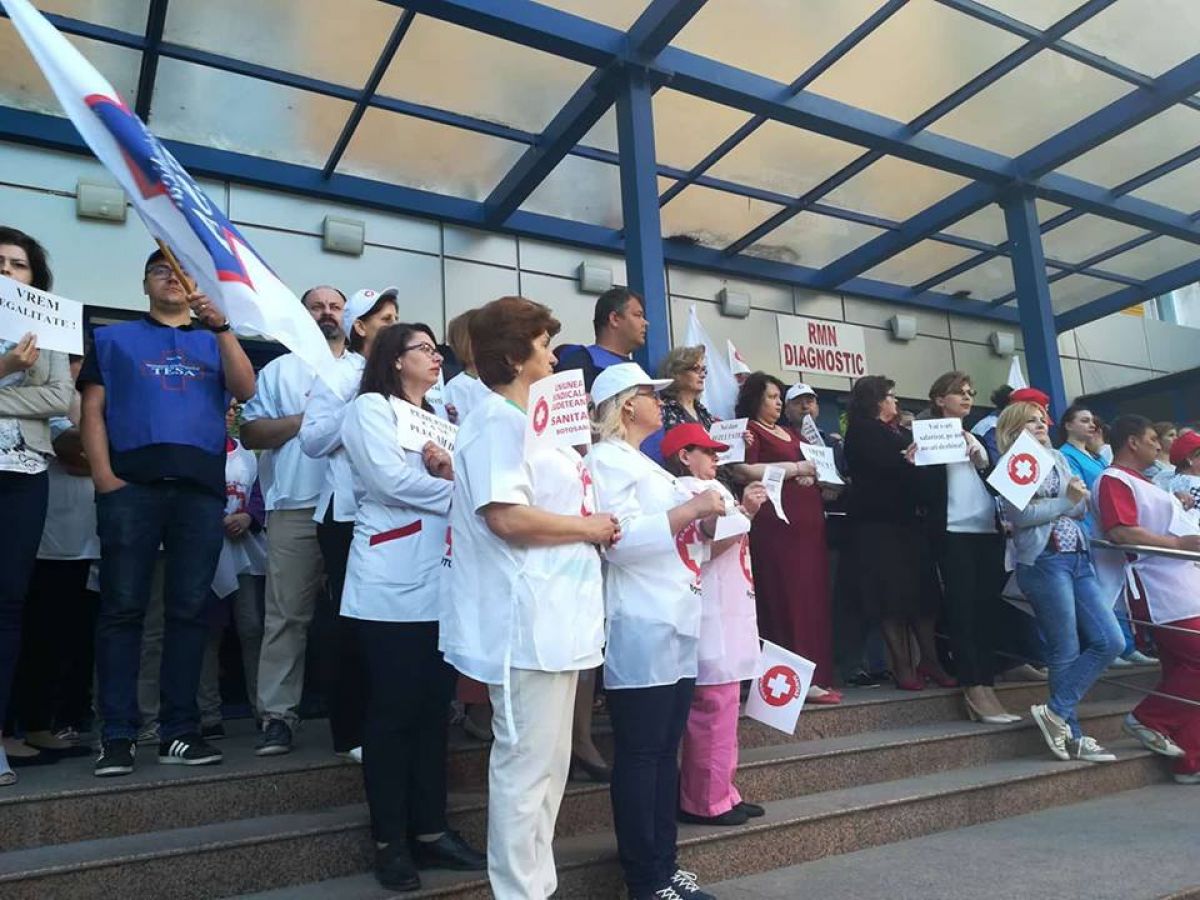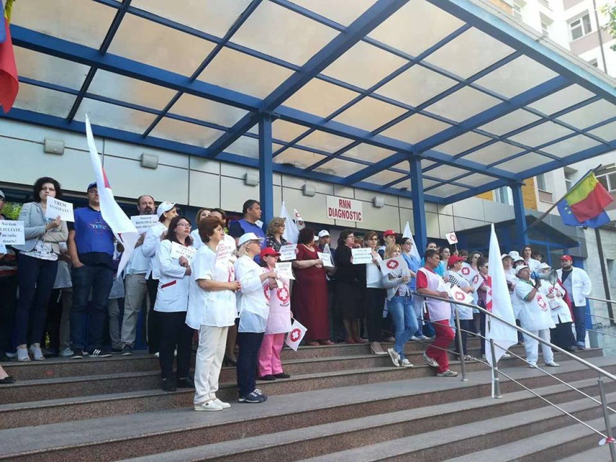 Angajaţii scandează : „Vrem dreptate pentru sănătate” „Vrem respect” „Unitate pentru sănătate”