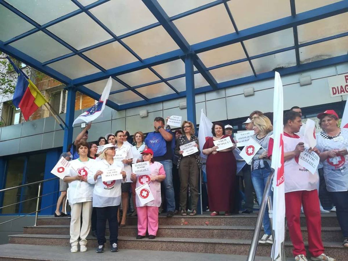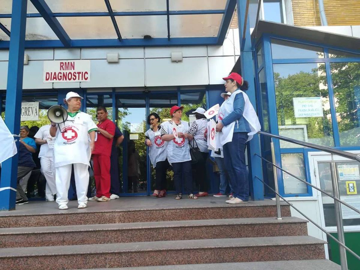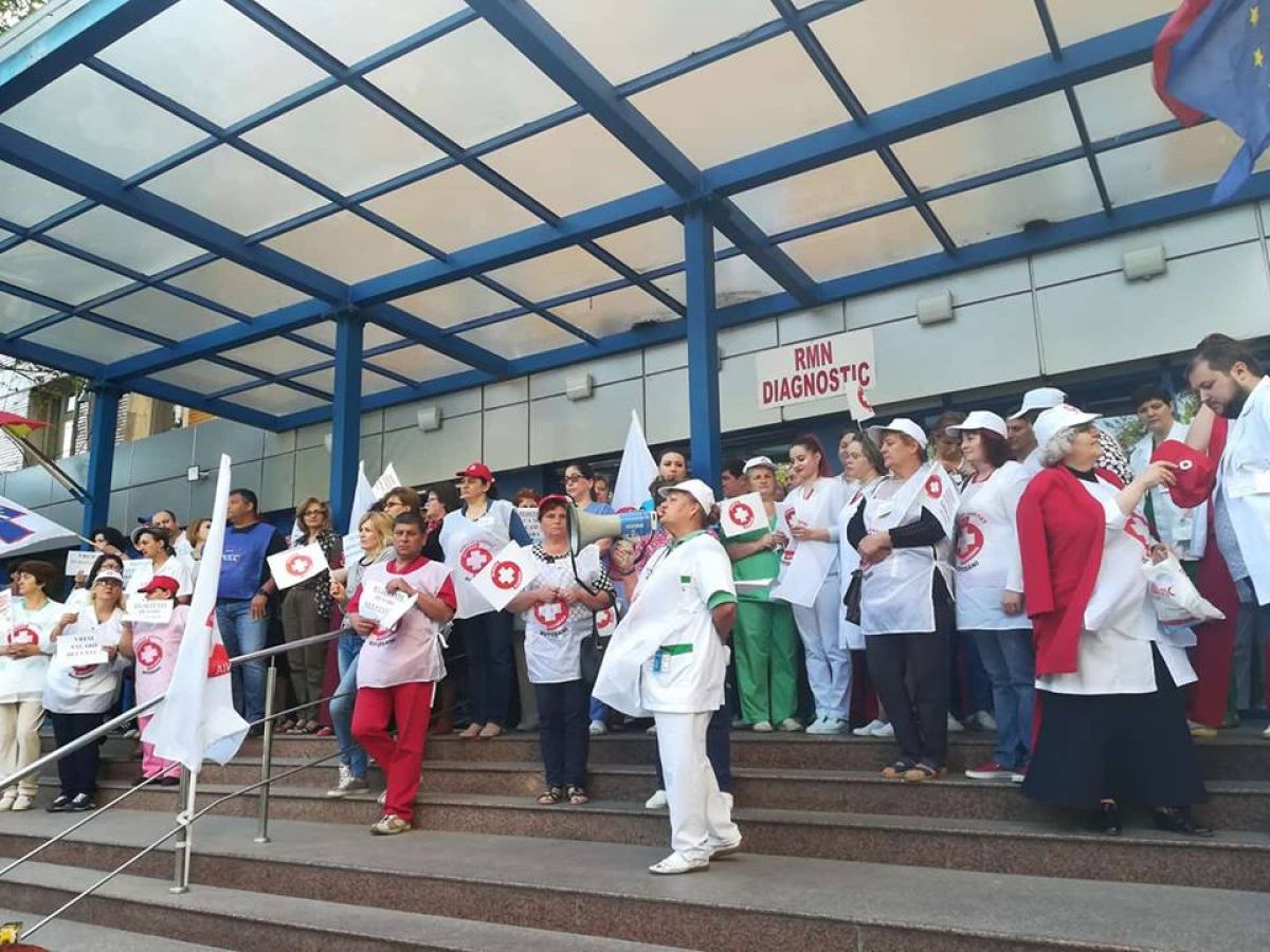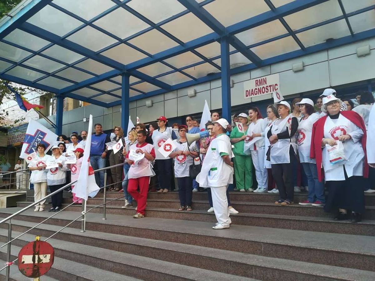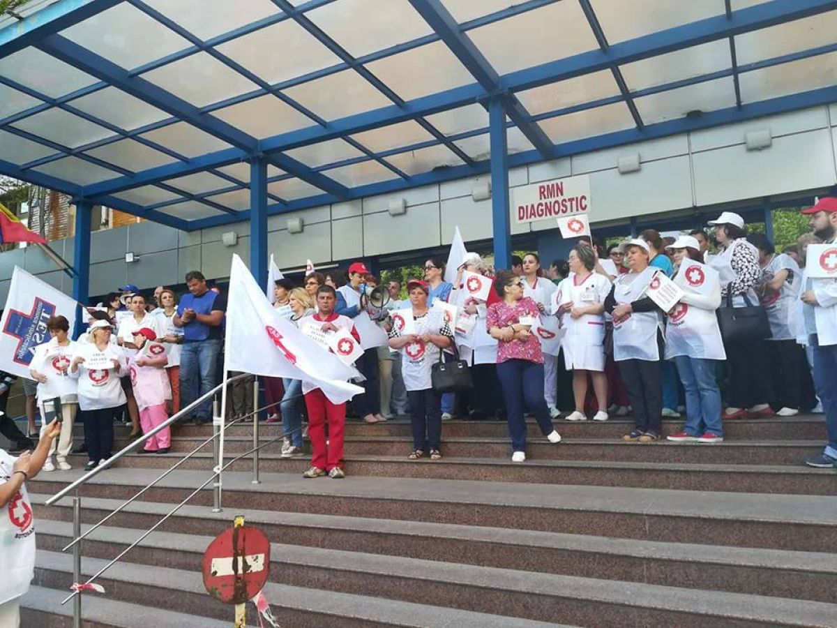 Angajaţii scandează : „Vrem dreptate pentru sănătate” „Vrem respect” „Unitate pentru sănătate”