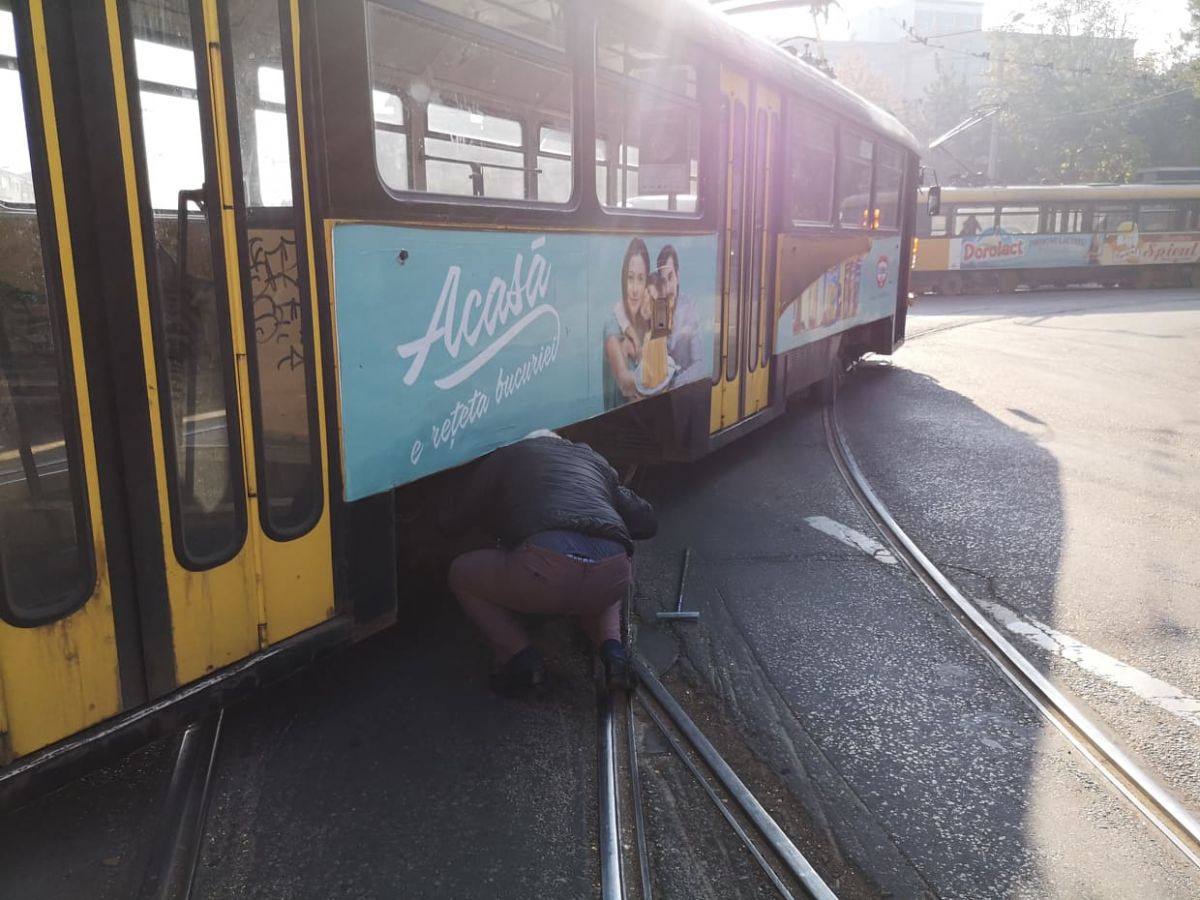 Circulația de la intersecția străzii Sucevei cu Calea Națională este dată peste cap în aceste momente, după ce un tramvai a deraiat din nou în această zonă.