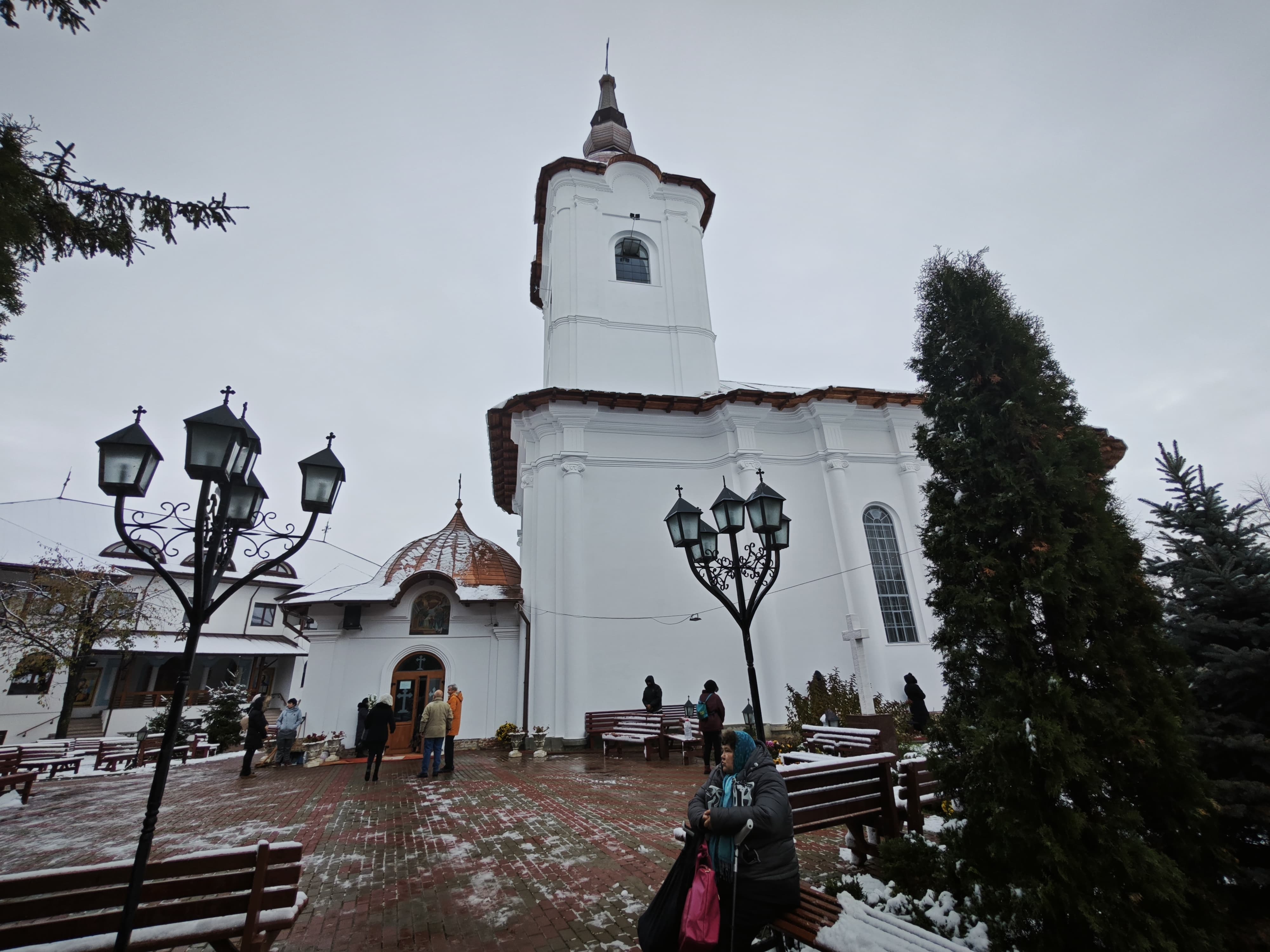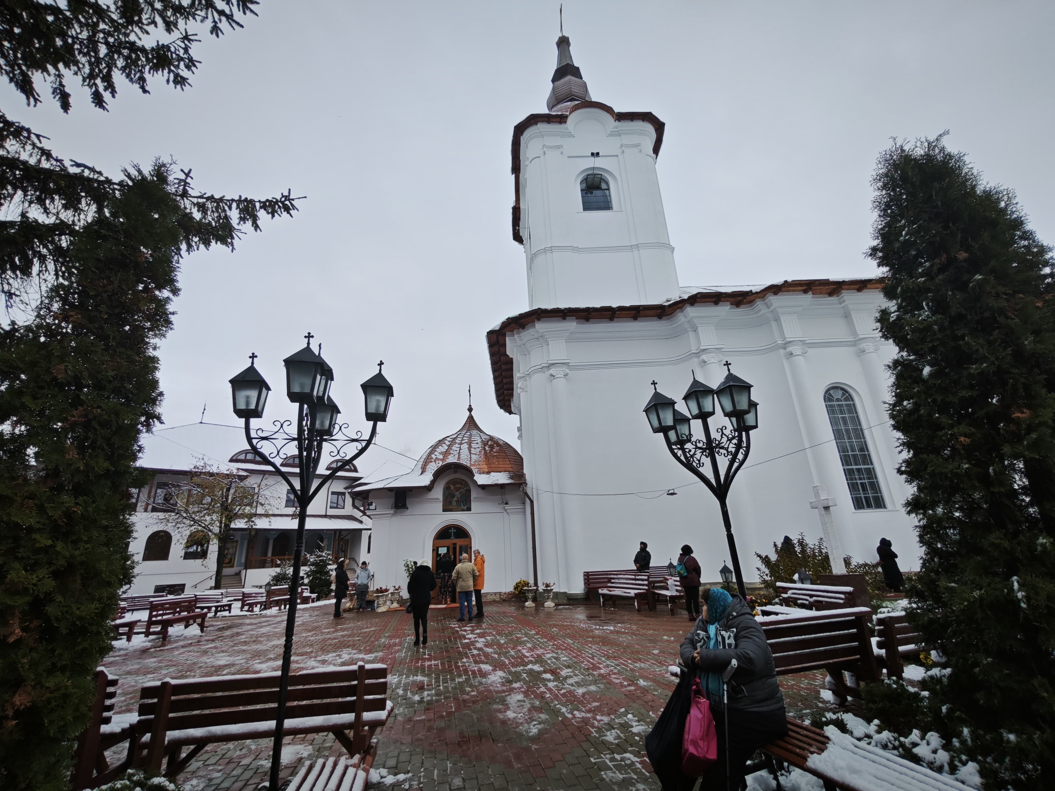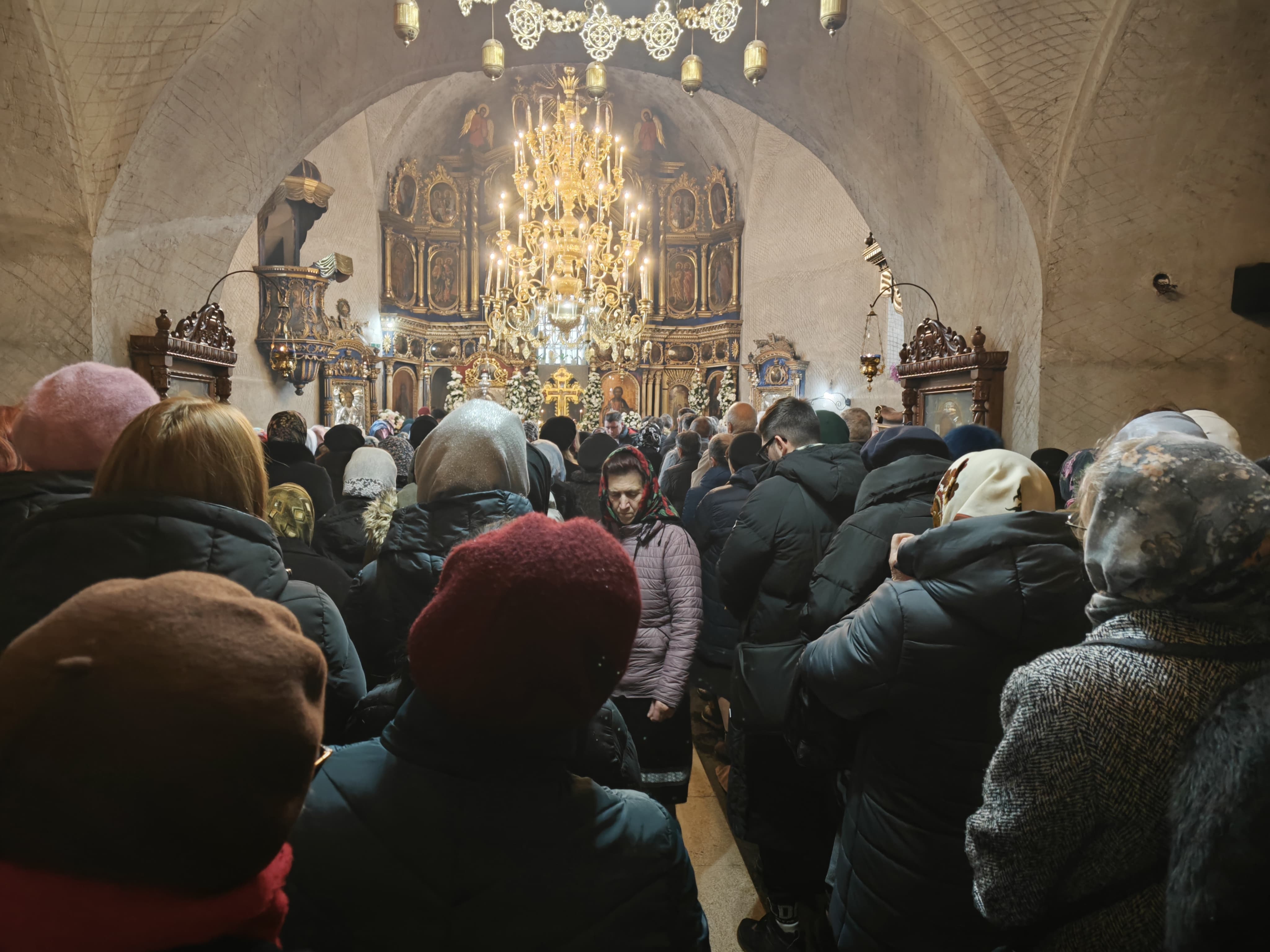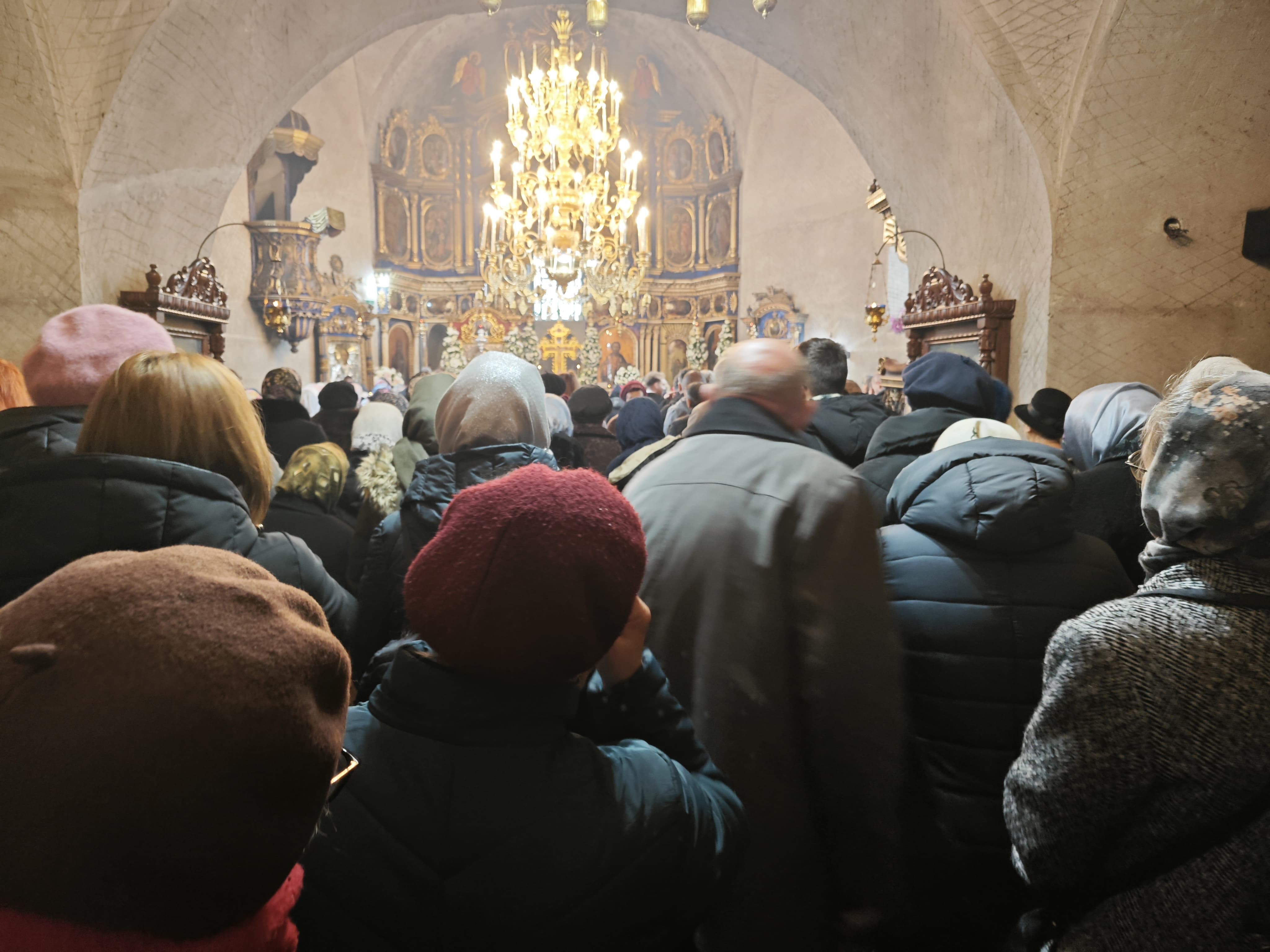 În aceste momente, lăcașul de cult este plin de credincioșii care ascultă Sfânta Liturghie.