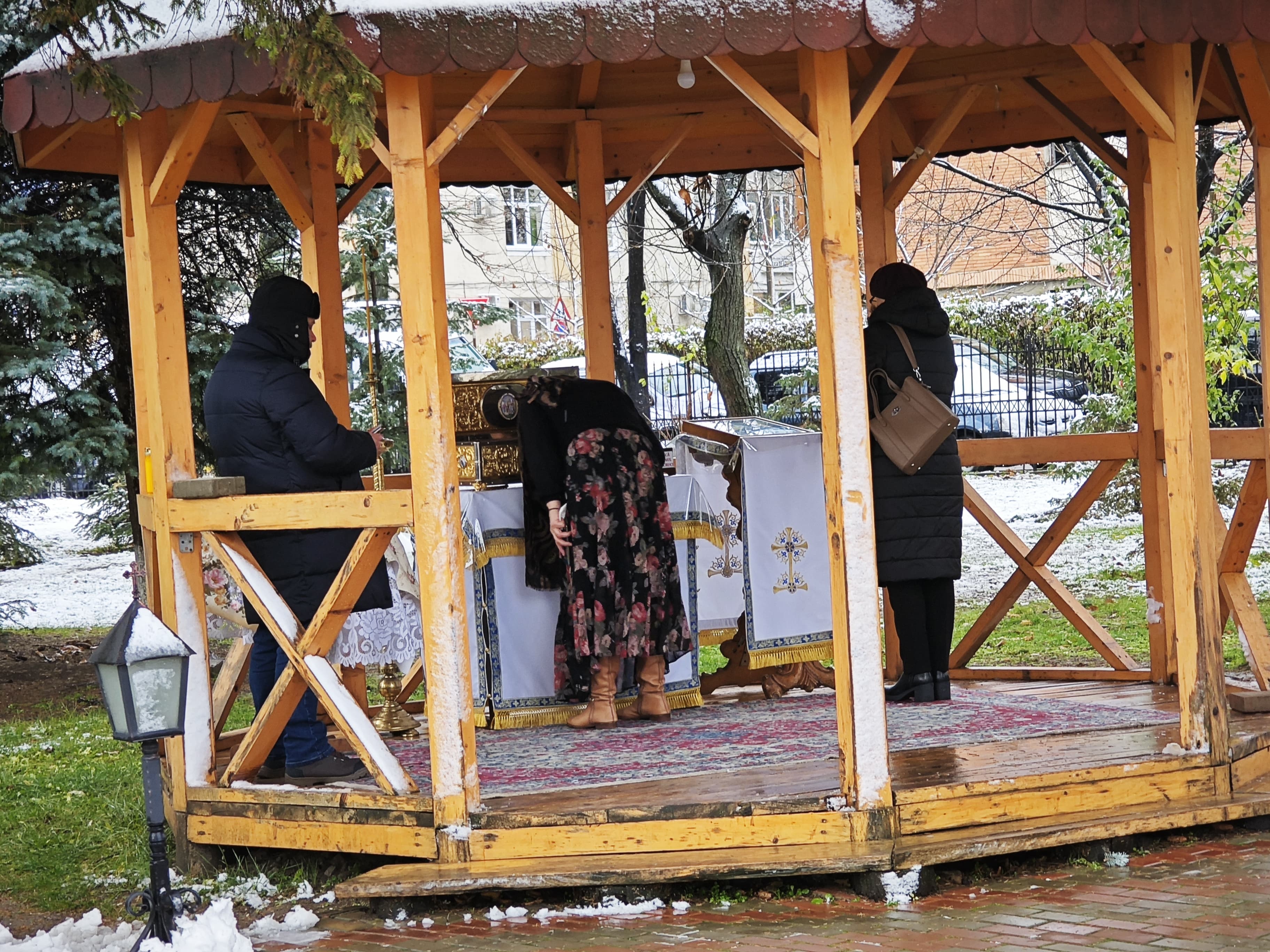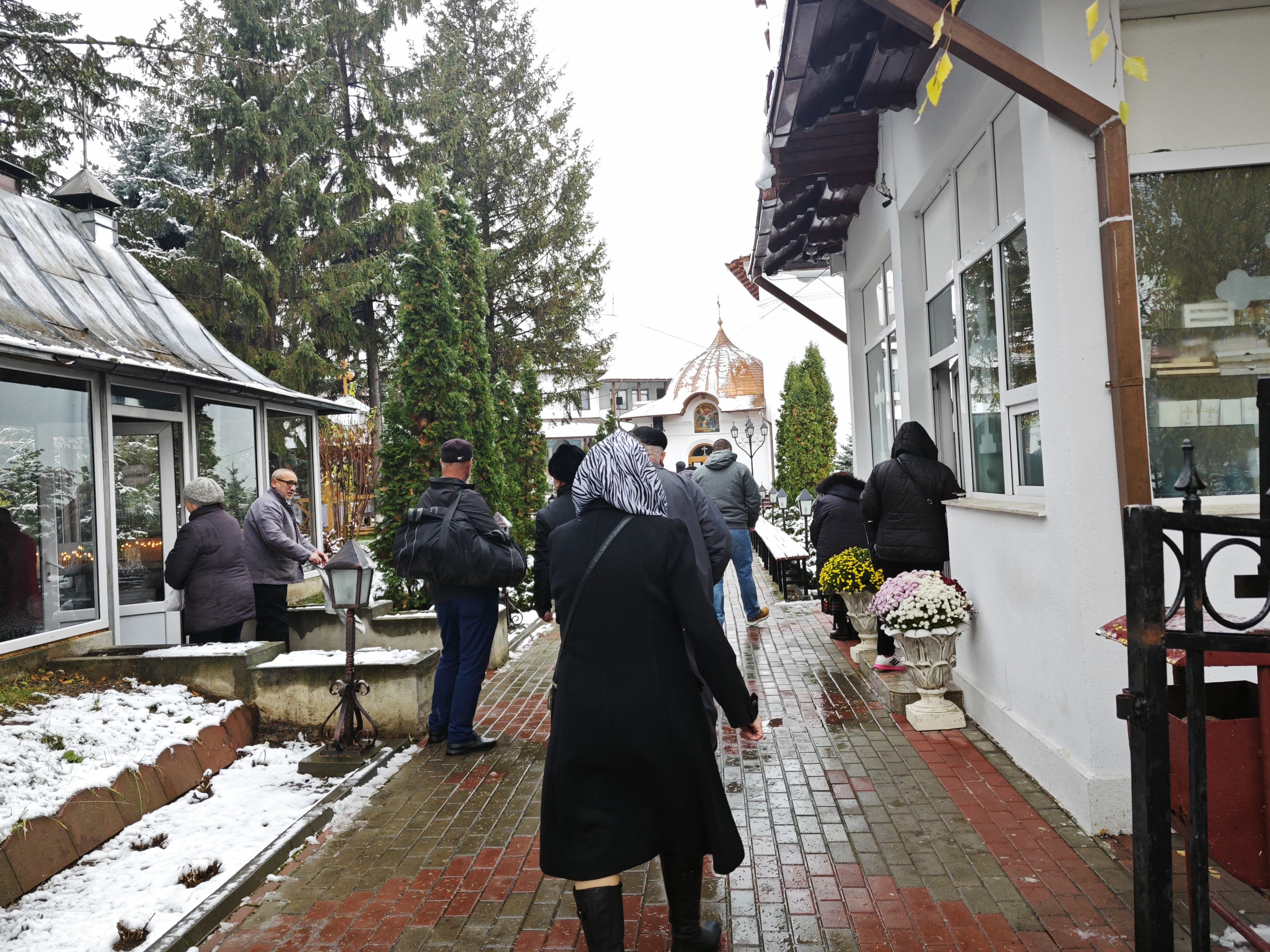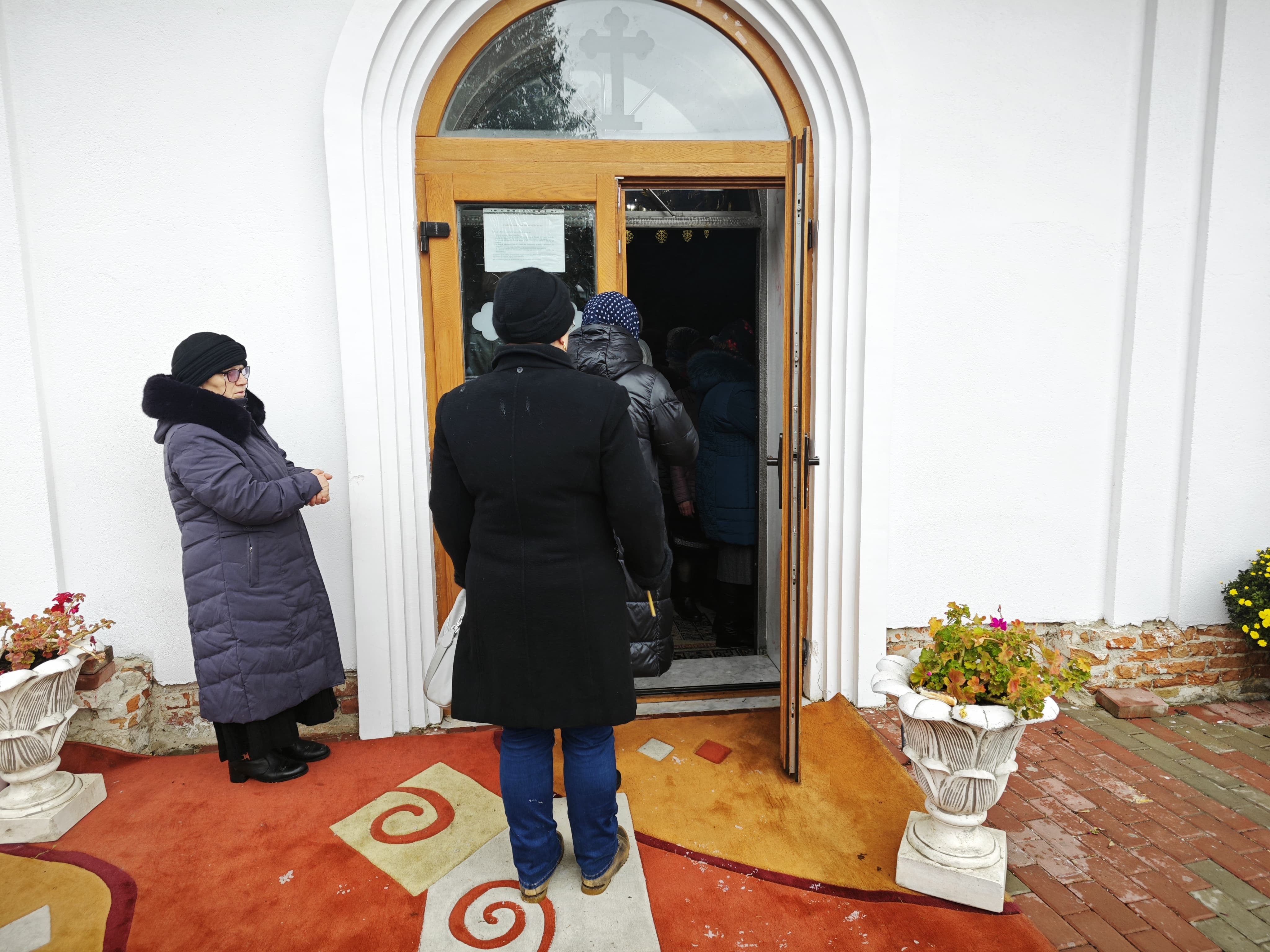 Sunt credincioși care ascultă de afară slujba. Iar botoșănenii continuă să ajungă la biserica de lângă Casa de Asigurari.