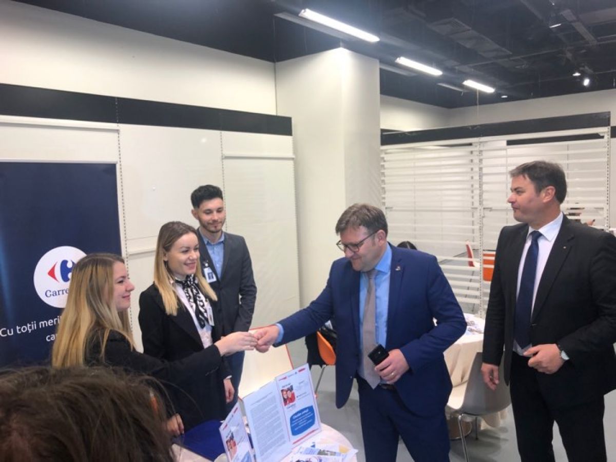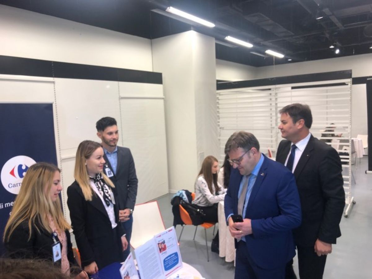 La Bursa Generală a locurilor de muncă şi-a făcut apariţia şi ministrul Muncii, Marius Budăi însoţit de prefectul Dan Şlincu. Aceştia au salutat angajatorii prezenţi la eveniment.