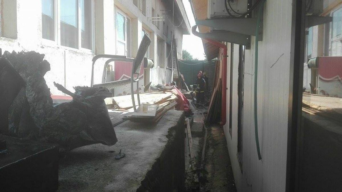 Acolo luaseră foc mai multe obiecte care se aflau depozitate într-o magazie situată undeva în spatele clădirii. Flăcările s-au manifestat doar în interiorul acestei încăperi, peretele exterior fiind practic înnegrit de fum. Pompierii au ajuns cu o autospecială și au stins flăcările în câteva minute. Ulterior au început sa scoată din respectiva magazie tot felul de obiecte care erau arse parțial.