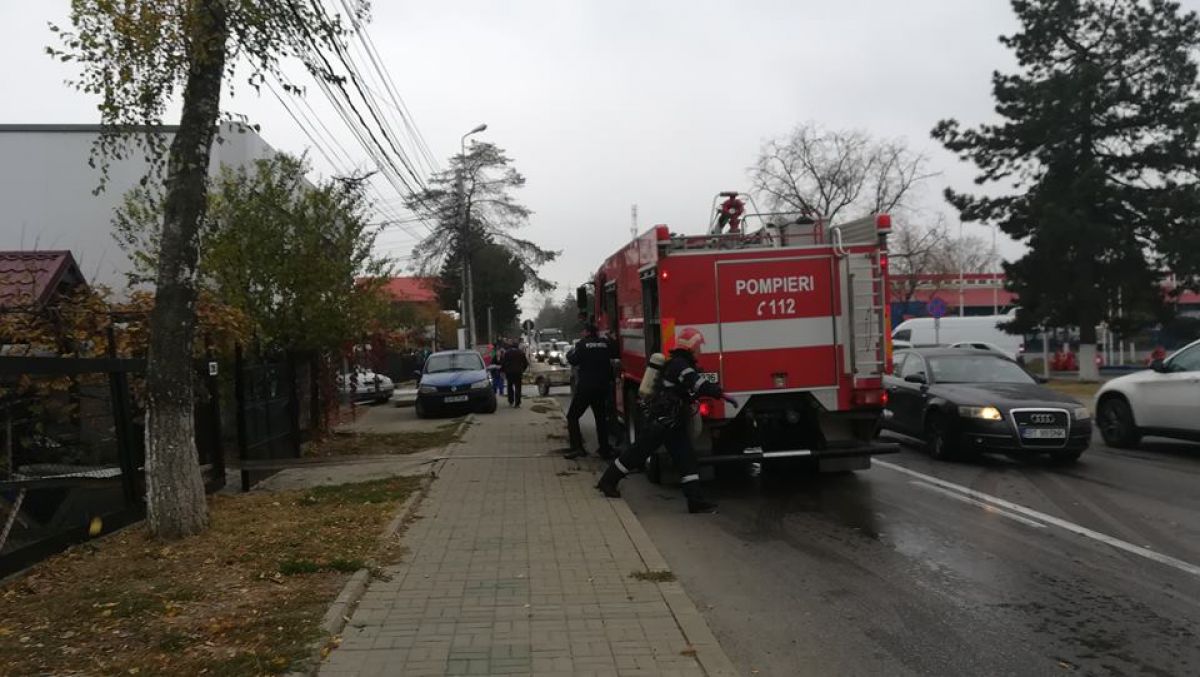 Trei autospeciale cu apă şi spumă ale Inspectoratului pentru Situaţii de Urgenţă intervin în aceste momente pentru stingerea unui incendiu, care a izbucnit la o clădire ce se află în plan secund.