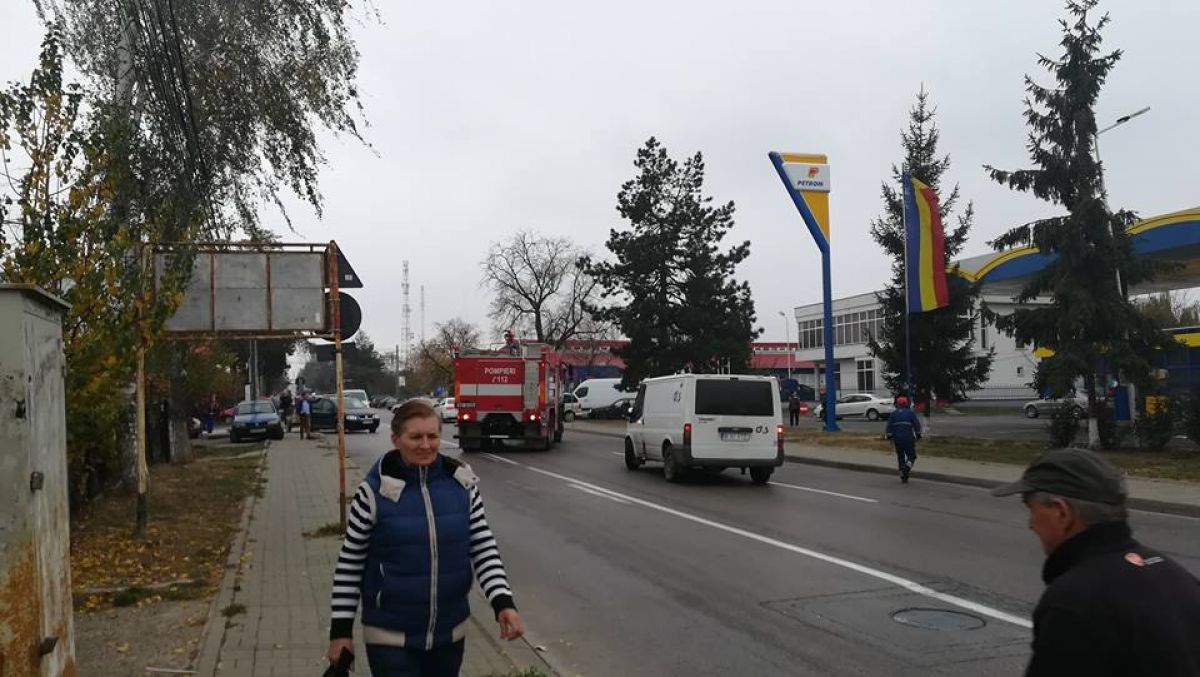 Este o desfăşurare de forţe impresionantă pe Calea Naţională, în faţa staţiei de carburanţi Petrom.