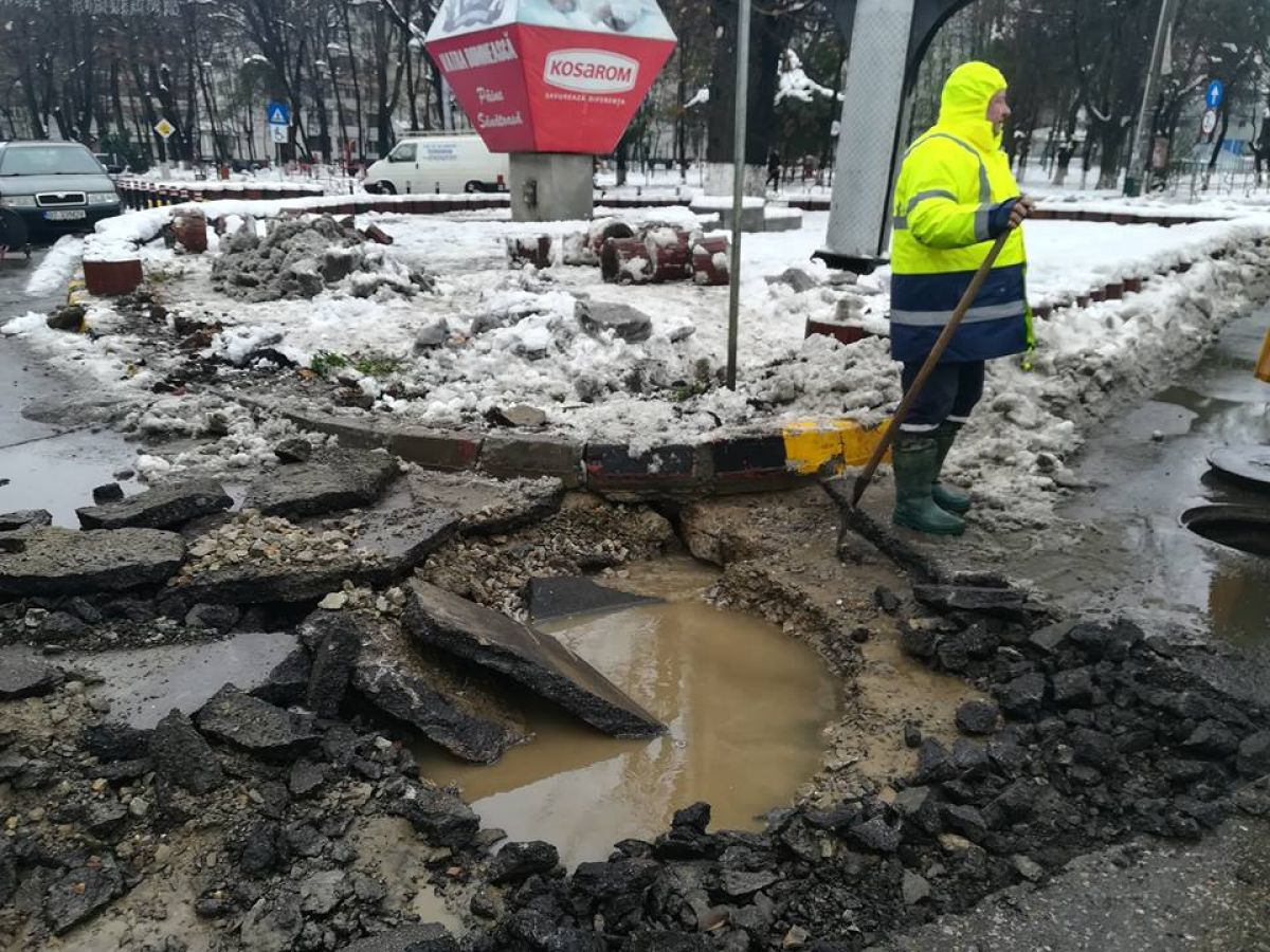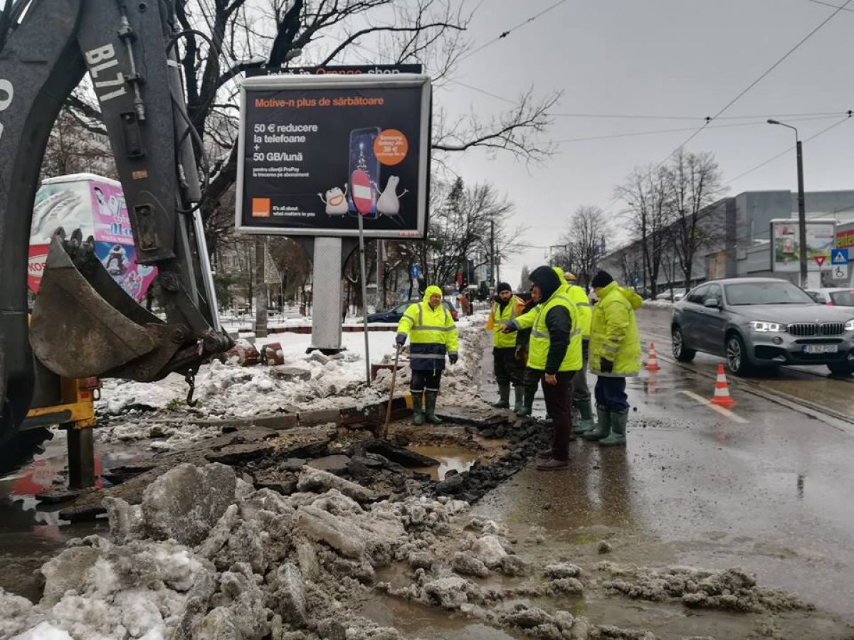 Muncitorii de la societatea Nova ApaServ intervin în aceste momente în intersecţia străzilor Sucevei cu Bulevardul Mihai Eminescu.