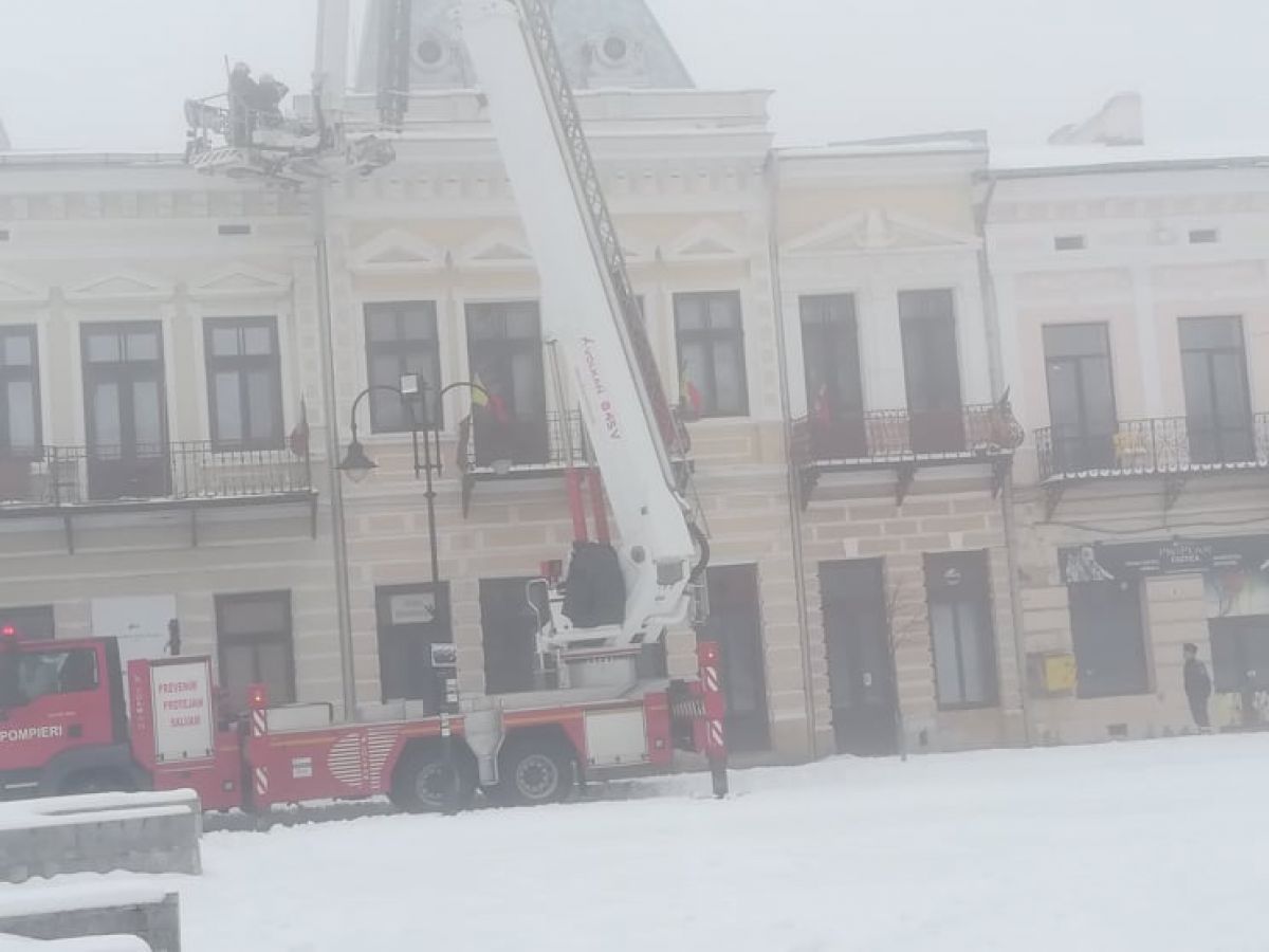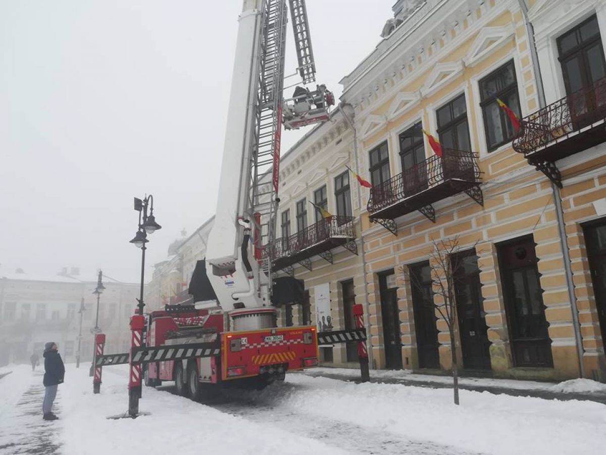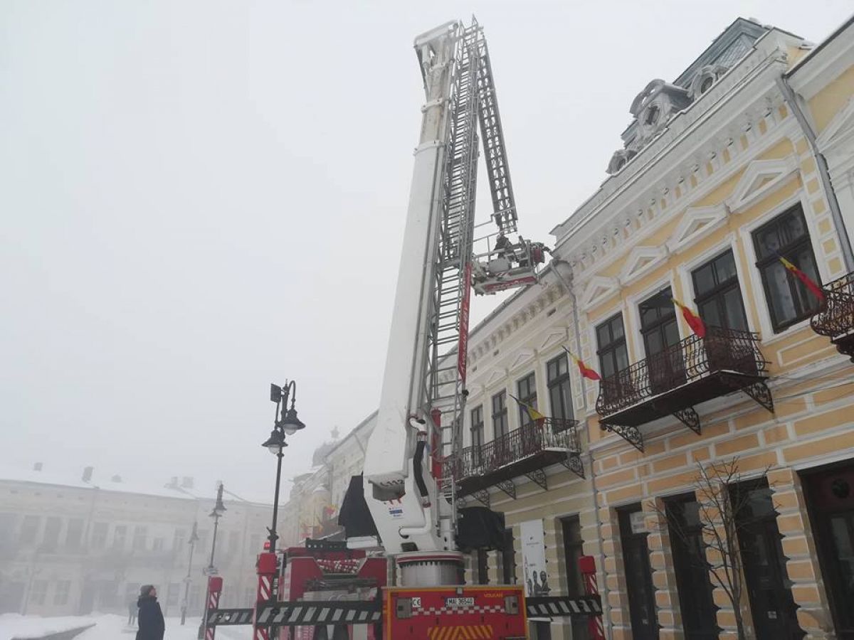 Un botoșănean a cerut ajutorul pompierilor pentru a veni să îndepărteze ţurțurii de gheață de la streșinile blocului.