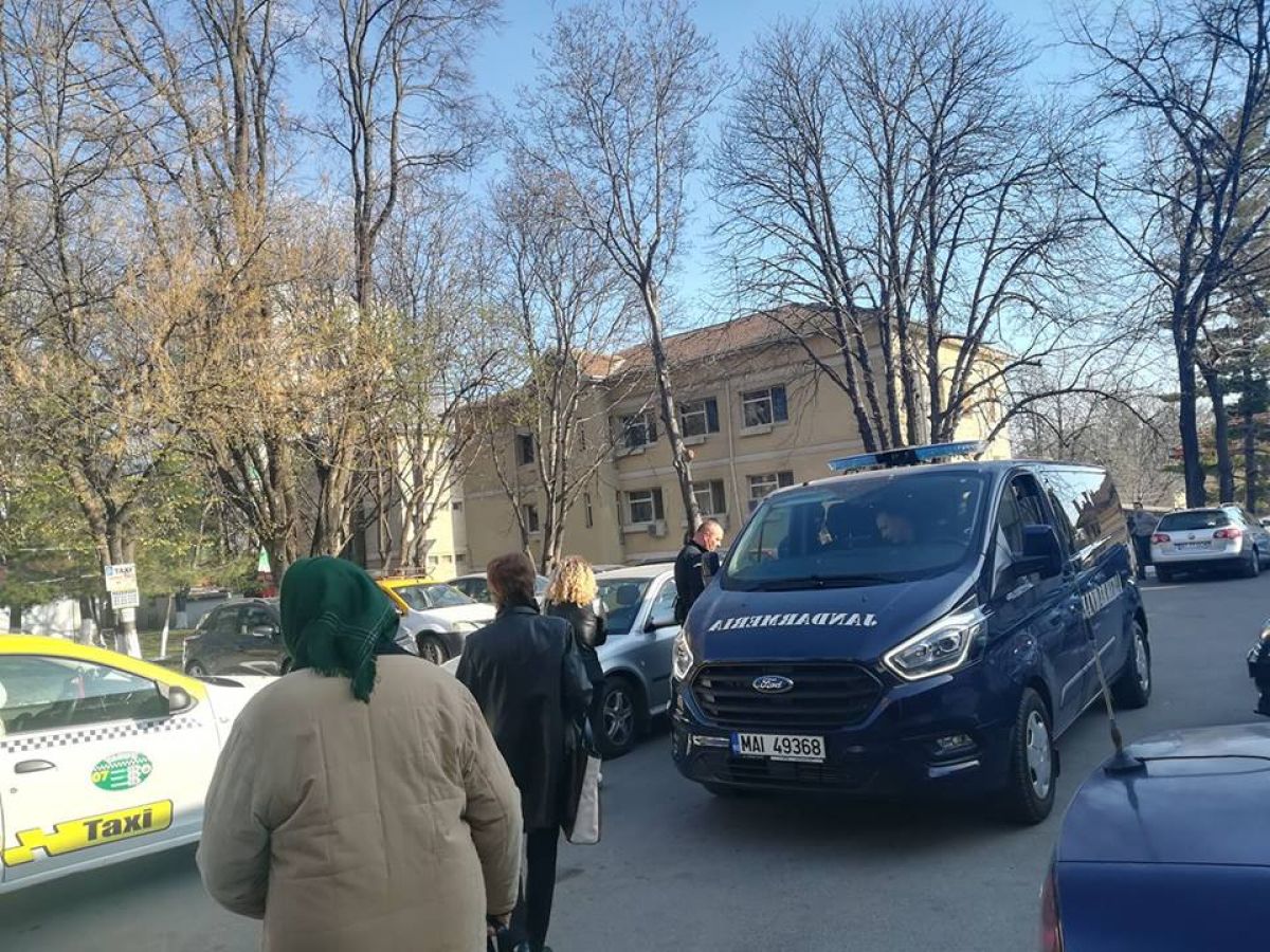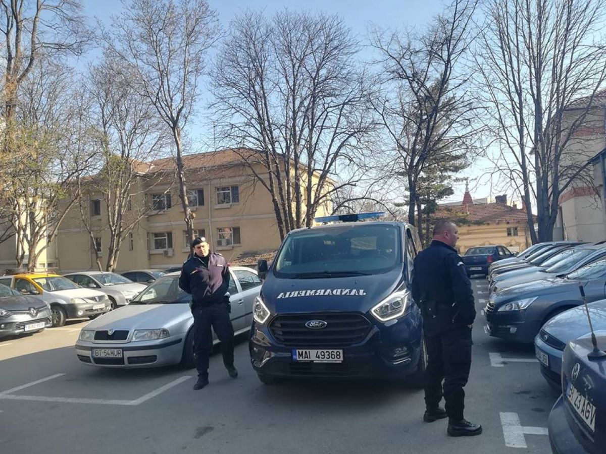 O patrulă a Inspectoratului Județean pentru Județean (IJJ) se află în aceste momente în parcarea Spitalului Județean Mavromati.