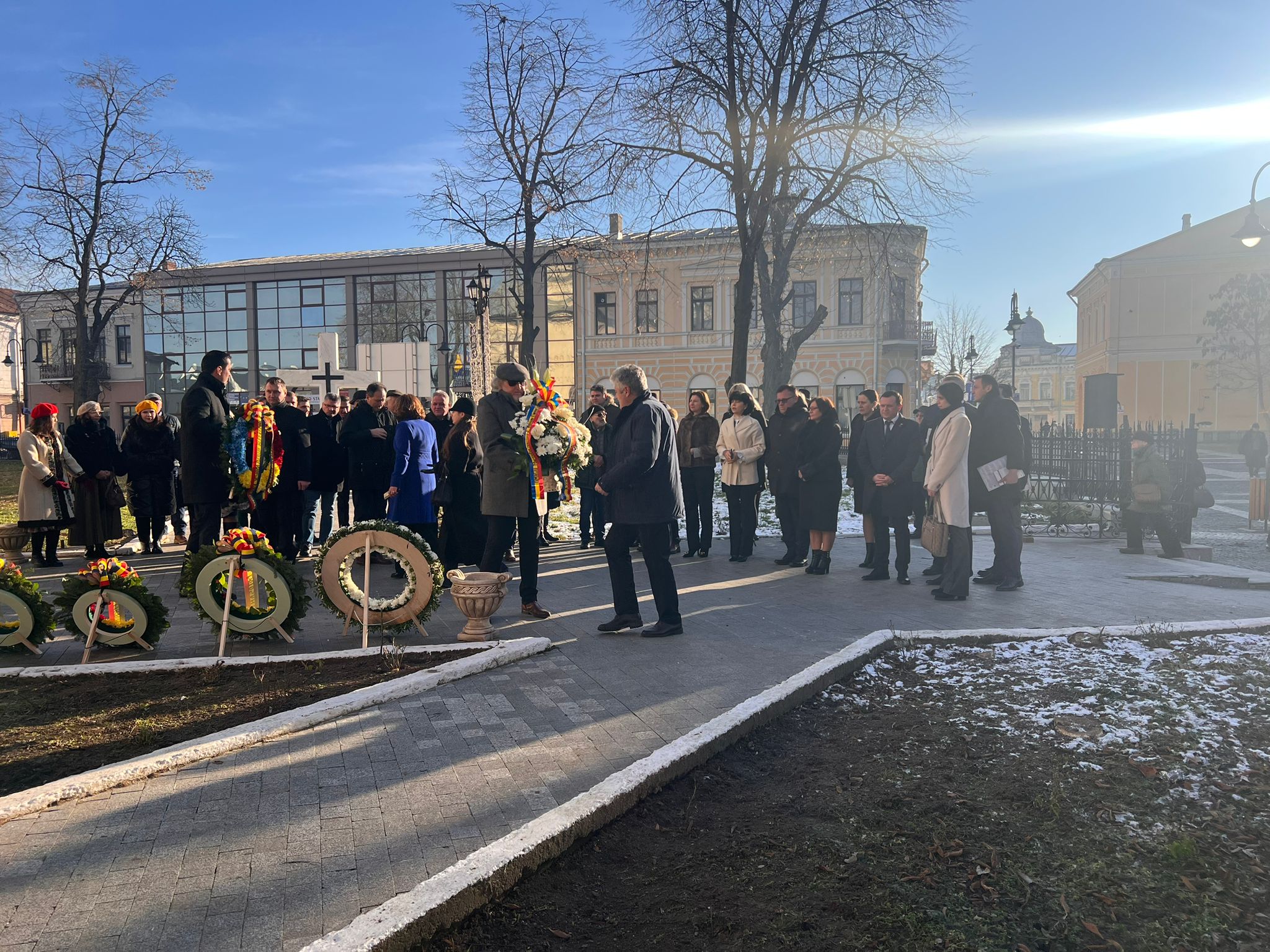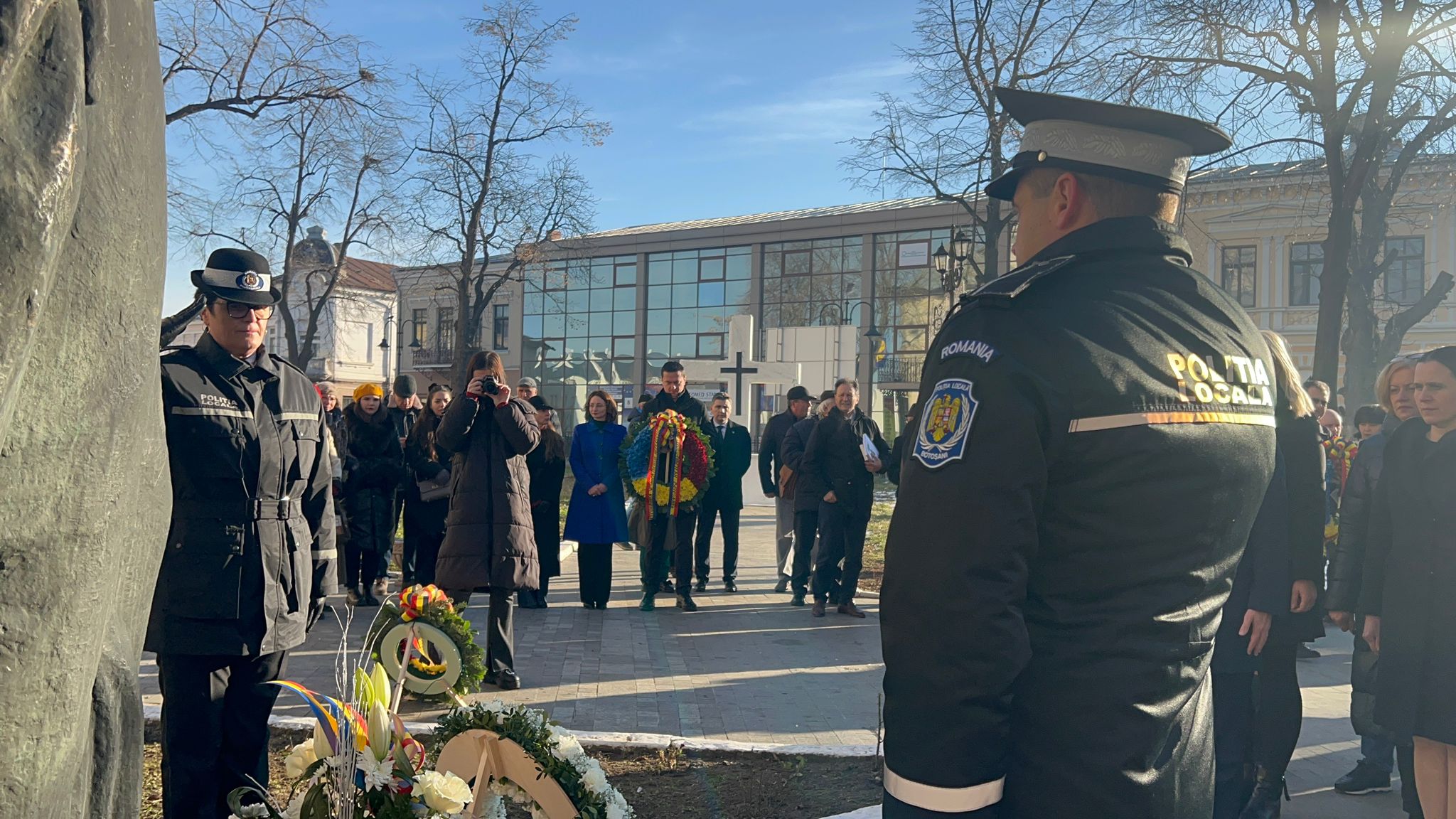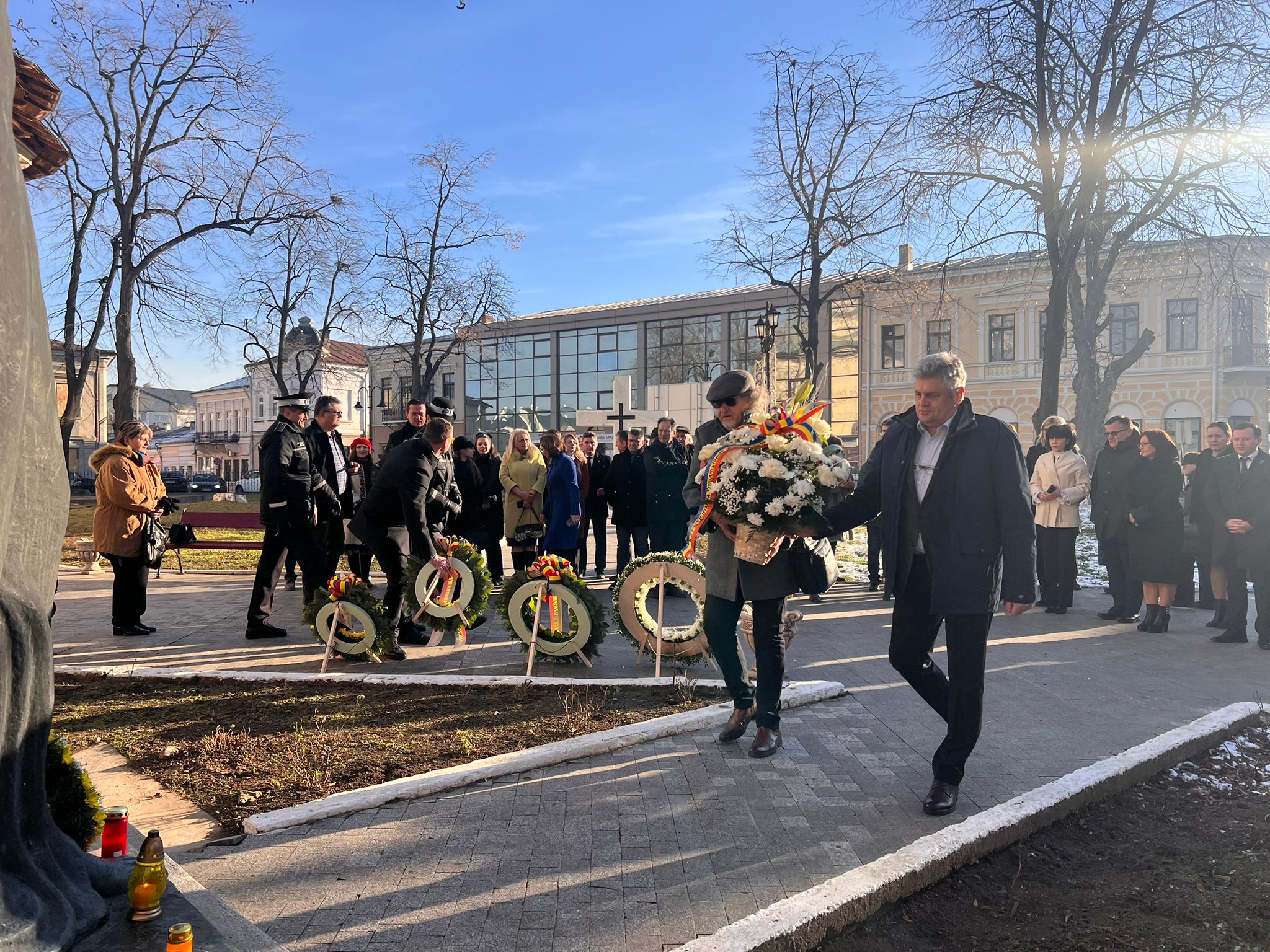Primii care au depus o coroană au fost cei de la AUR Botoșani în frunte cu senatorul Cătălin Silegeanu și deputatul Ariadna Cîrligeanu. Au mai depus coroane Primăria Botoșani, Prefectura, Consiliul Județean, Partidul Național Liberal și Partidul Social Democrat.