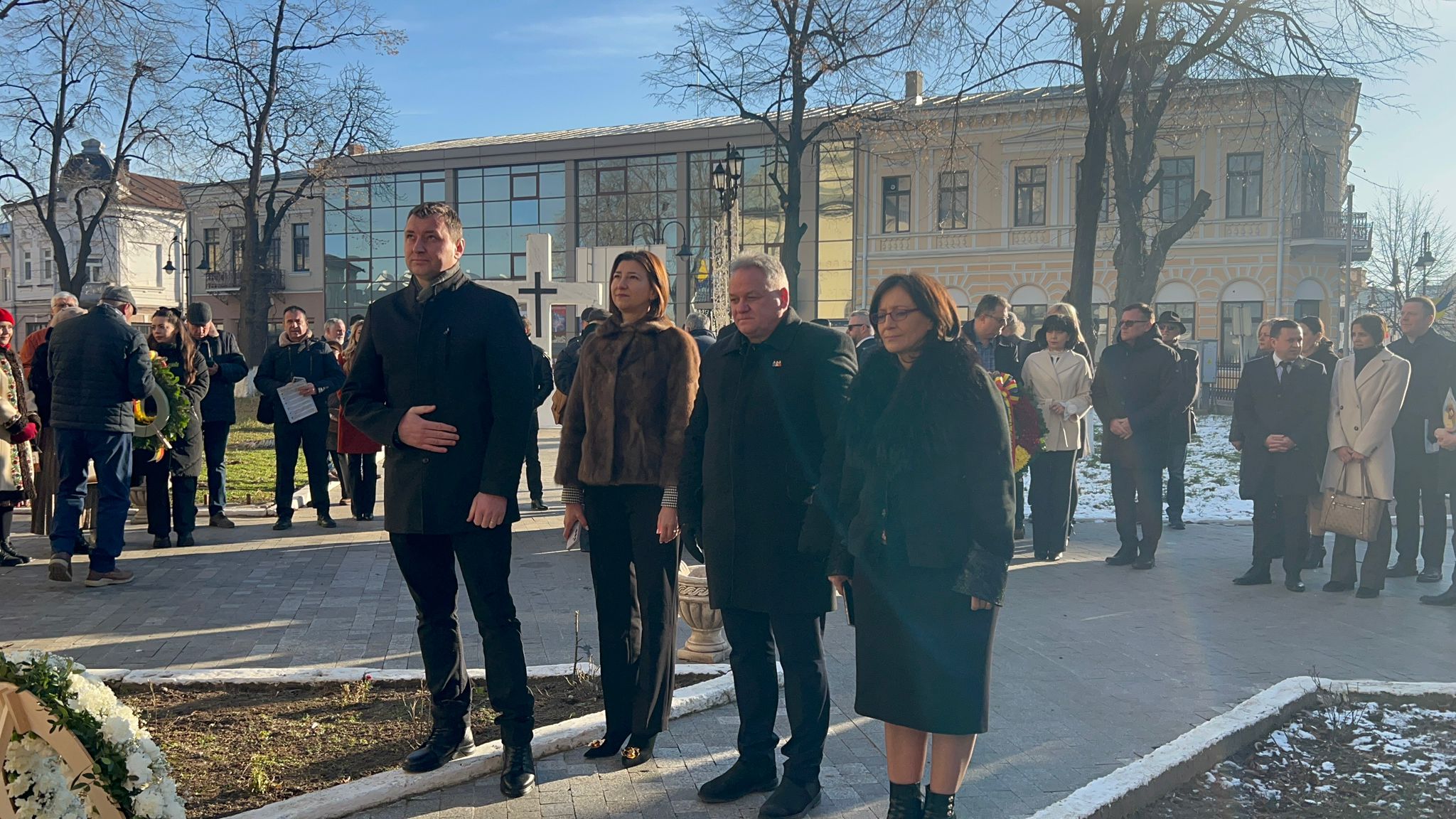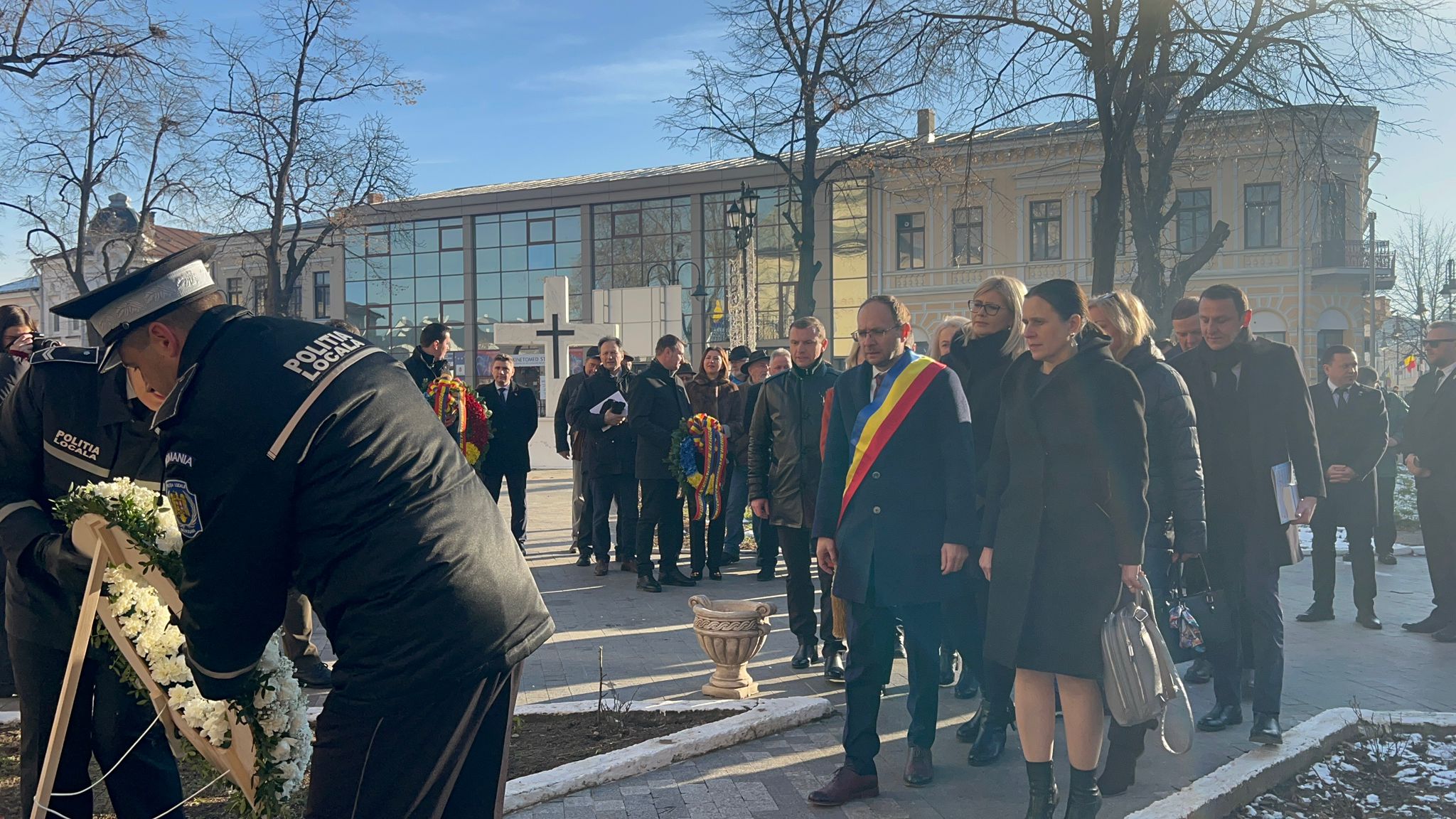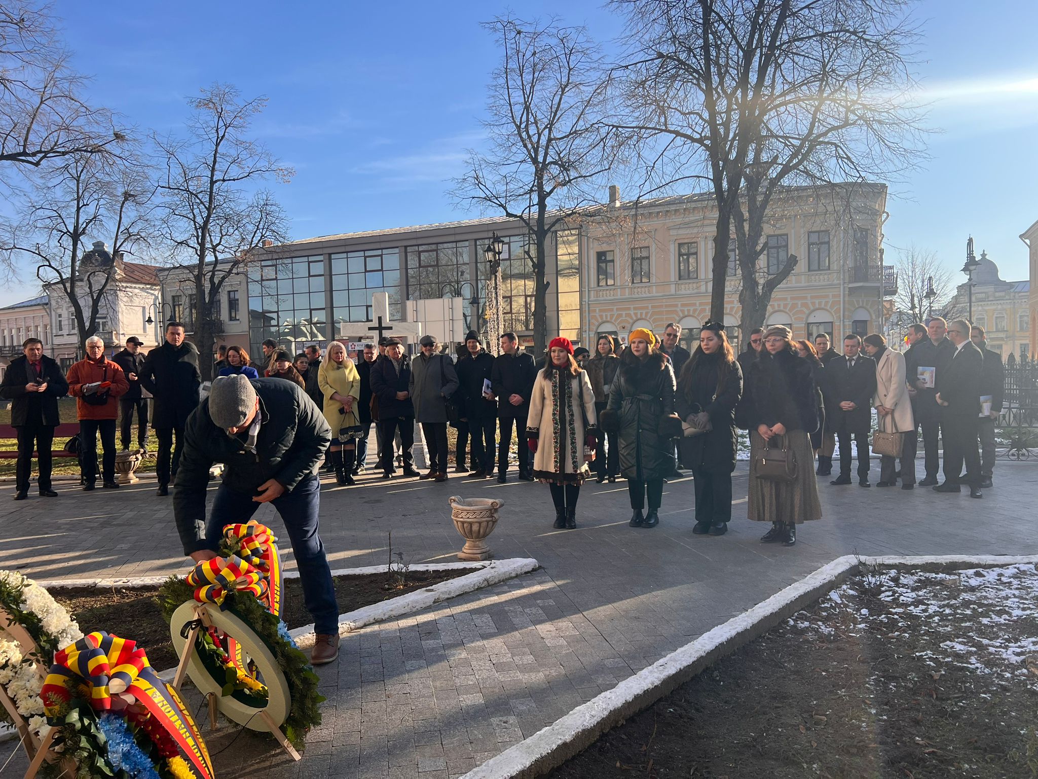 Primii care au depus o coroană au fost cei de la AUR Botoșani în frunte cu senatorul Cătălin Silegeanu și deputatul Ariadna Cîrligeanu. Au mai depus coroane Primăria Botoșani, Prefectura, Consiliul Județean, Partidul Național Liberal și Partidul Social Democrat.