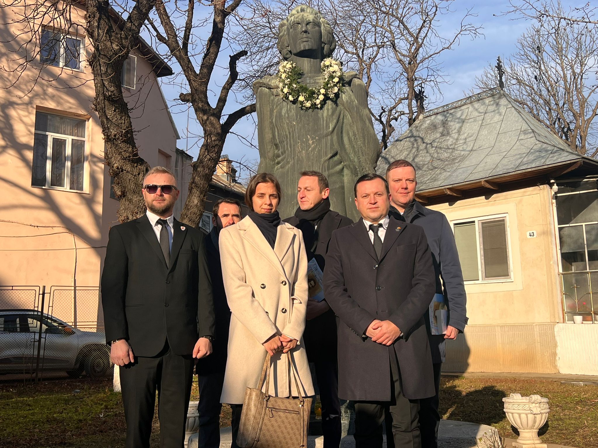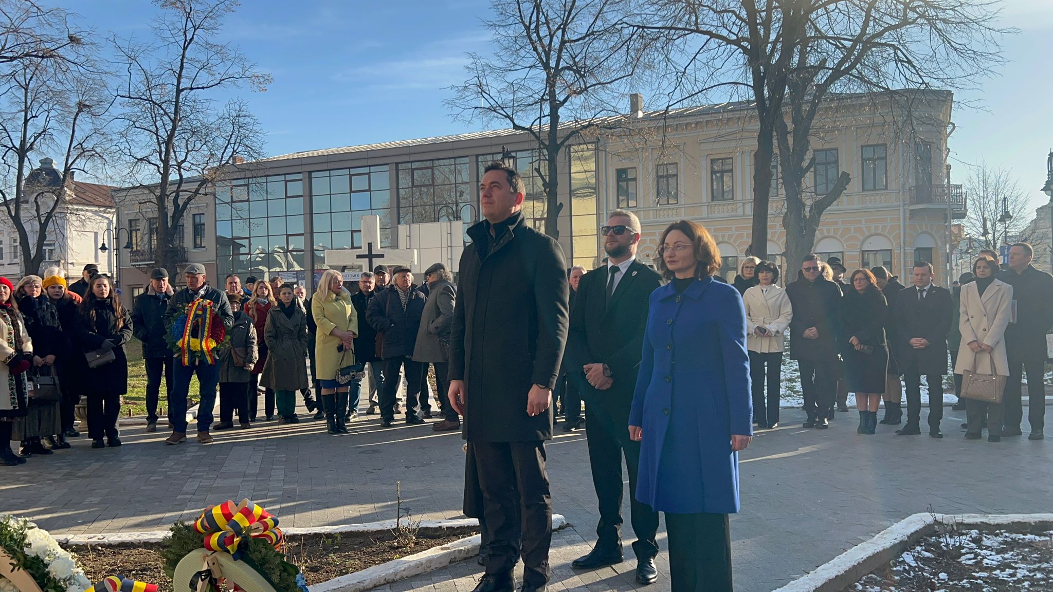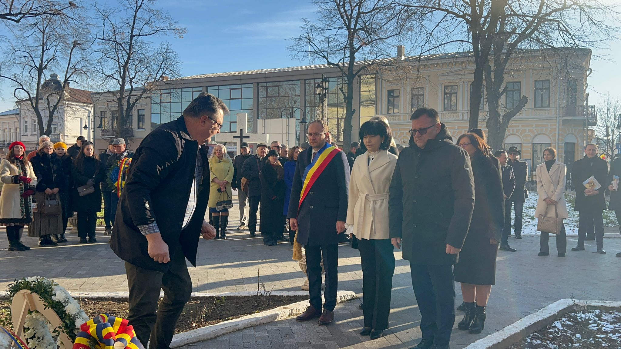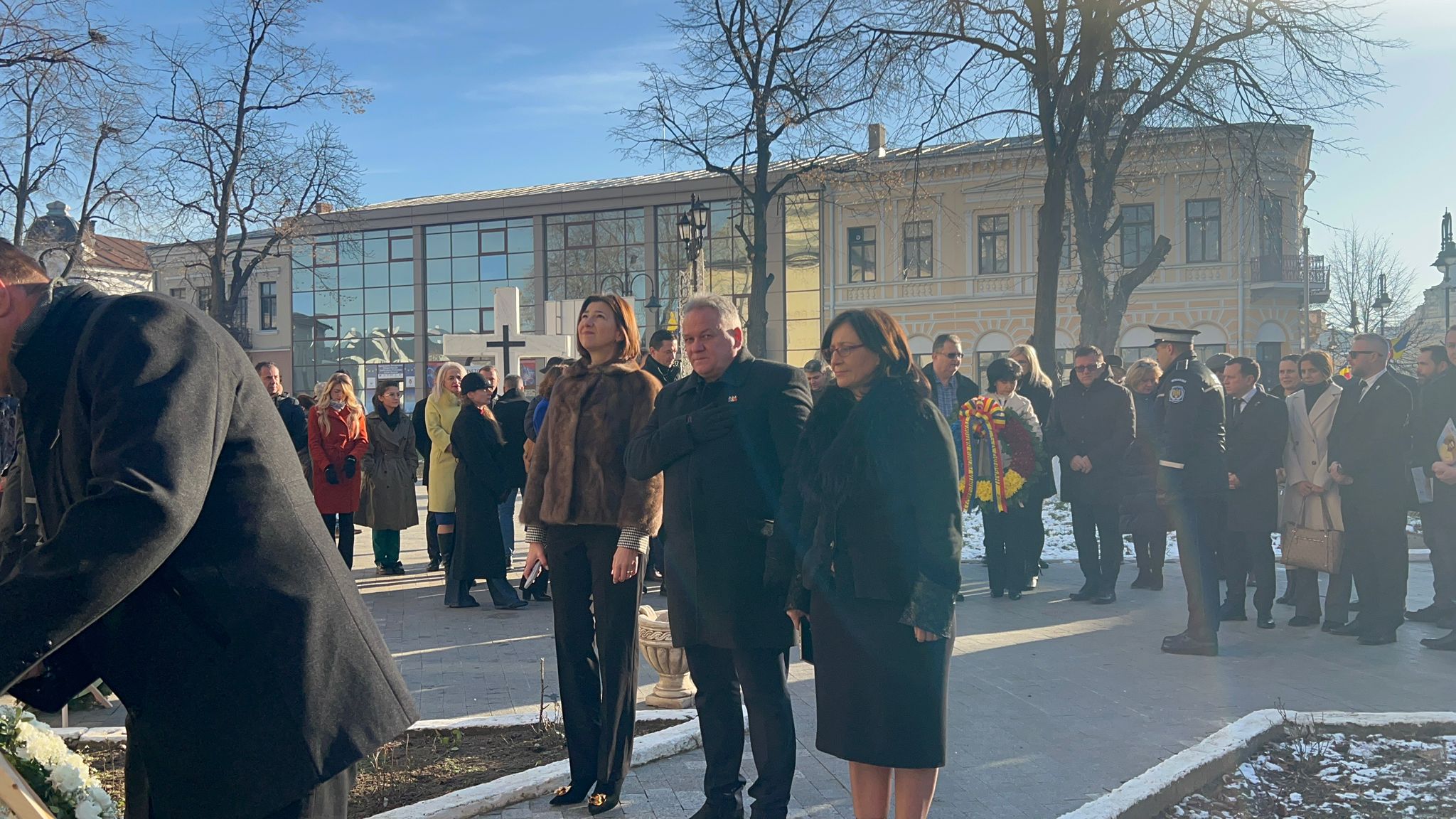 Având în vedere că lucrările de la Teatrul Mihai Eminescu nu au fost finalizate în totalitate s-a optat ca partea de depunere a coroanelor să se facă la statuia din curtea Bisericii Uspenia.