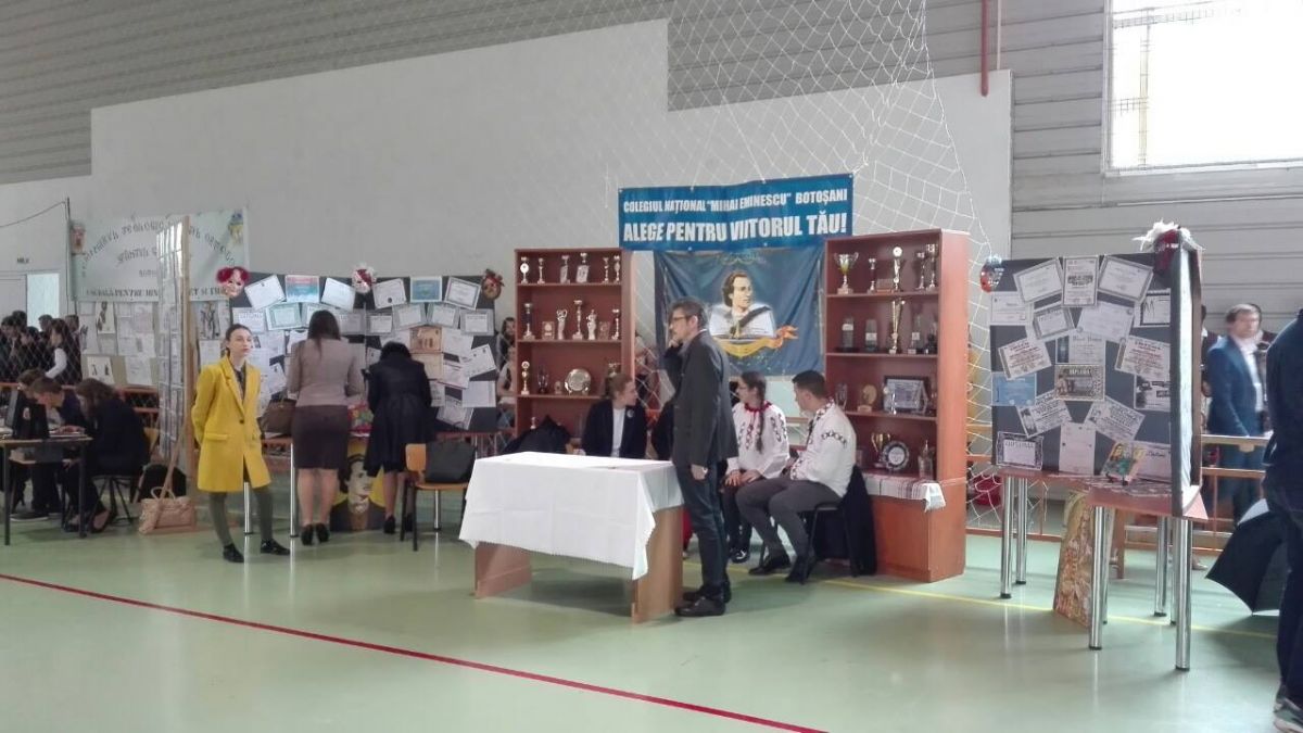 Evenimentul are loc în sala de sport a Colegiului Tehnic ”Gheorghe Asachi”, unde s-au adunat reprezentanții unităților de învățământ preuniversitare de la Botoșani. Liceele și-au amenajat tot felul de standuri în care își prezintă cu mândrie cupe și diplome obținute la concursuri naționale și internaționale. Elevii și cadrele didactice s-au așezat în perimetrul destinat unității de învățământ pe care o reprezintă, se fotografiază și discută între ei. Sunt așteptate să ajungă la această acțiune și oficialitățile orașului și județului. Târgul Liceelor și Târgul Meseriilor este organizat de Inspectoratul Școlar Județean Botoșani (IȘJ) și se desfășoară în perioada 13-14 mai 2016. ( G.E. )