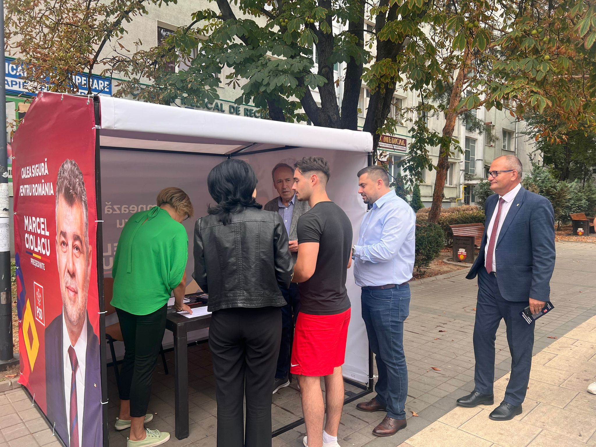În frunte cu președintele Doina Federovici, pesediștii botoșăneni au ajuns la cortul amplasat în fața bisericii Sfânta Parascheva la o acțiune de strângere de semnături pentru Marcel Ciolacu, candidat la președinția României.