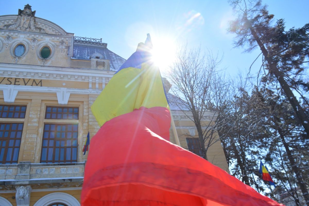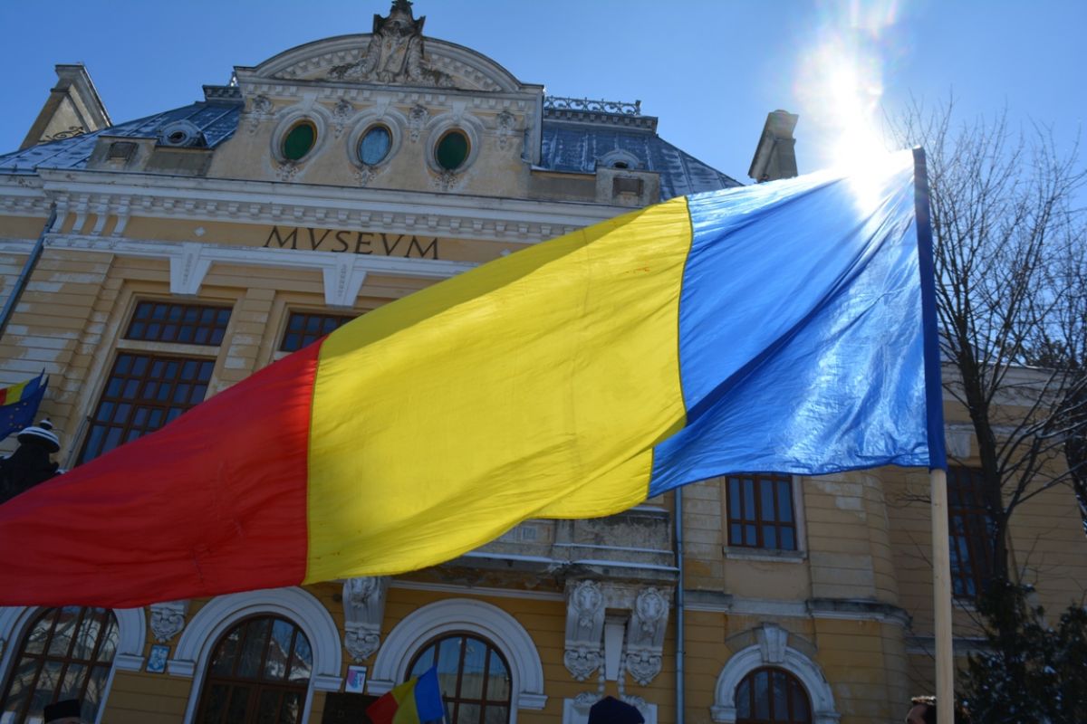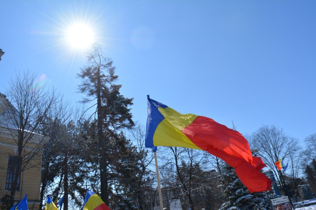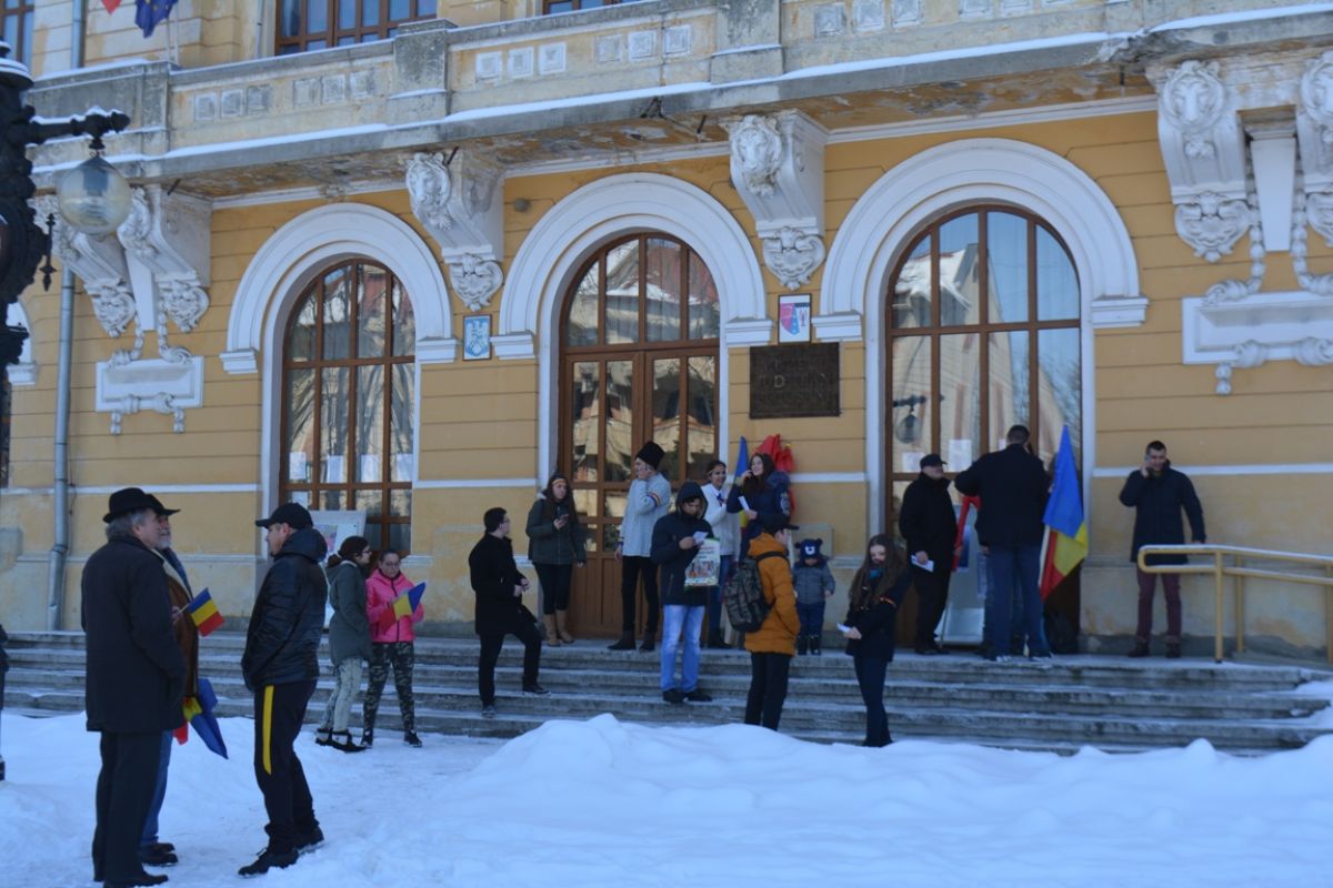 Botoşănenii patrioţi flutură tricolorul, cordonul fiind deschis de un steag uriaş şi de un banner cu mesajul „Judeţul Botoşani vrea reîntregirea României”.