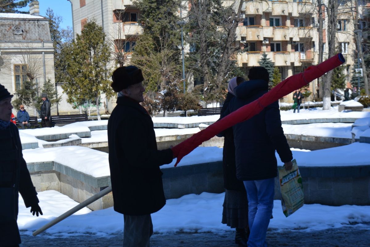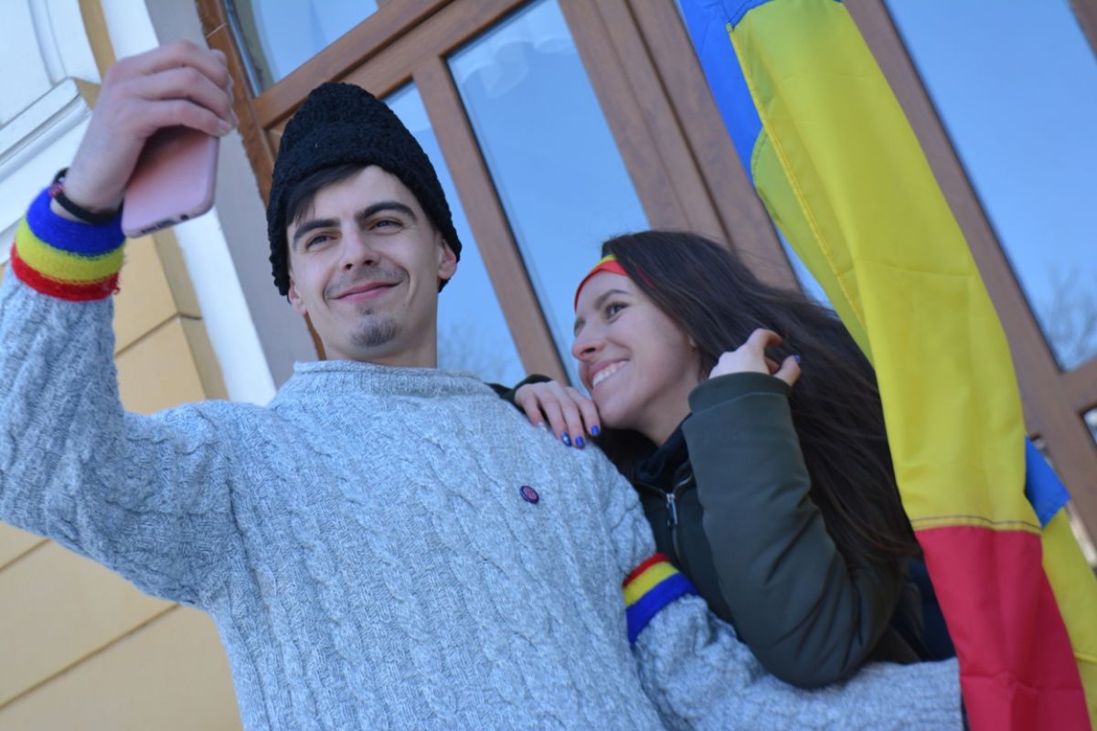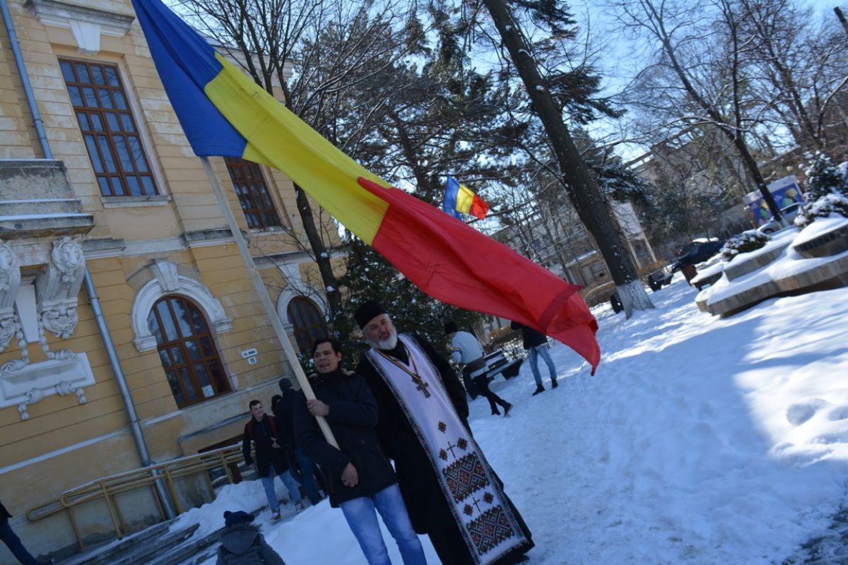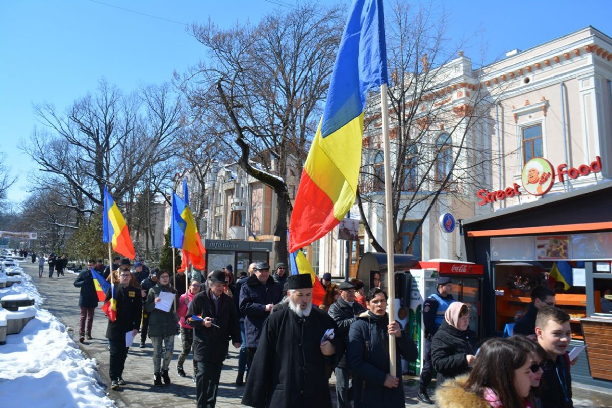 Elevi, pensionari, scriitori şi chiar un preot mărşăluiesc la această prin oraş într-o acţiune de suflet: Unirea Basarabiei cu România.