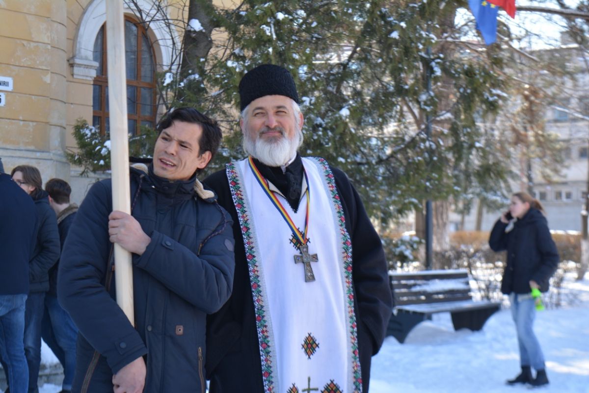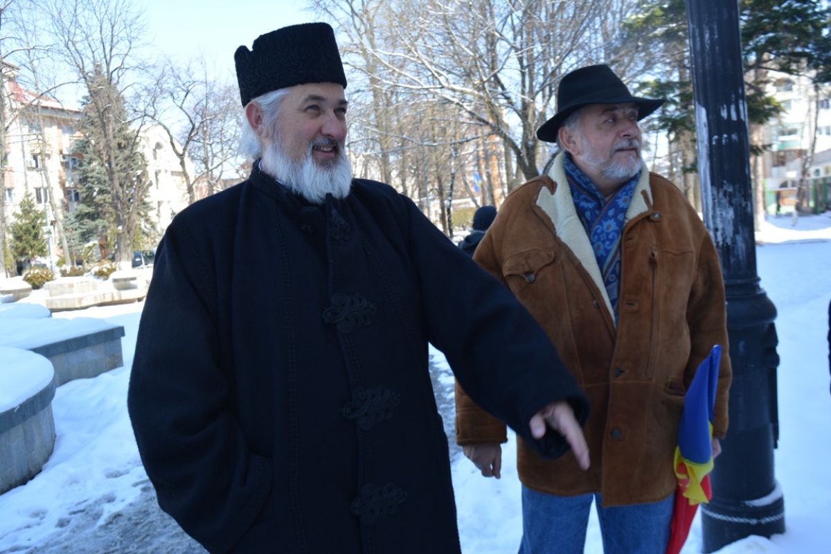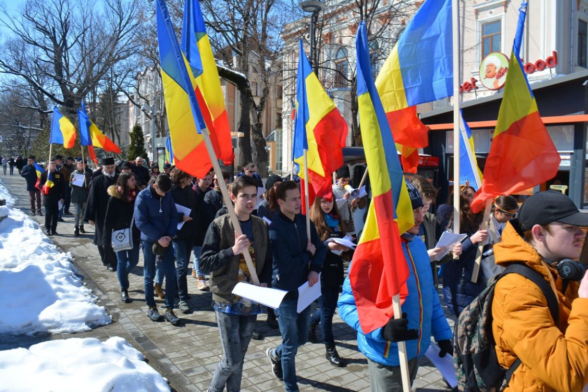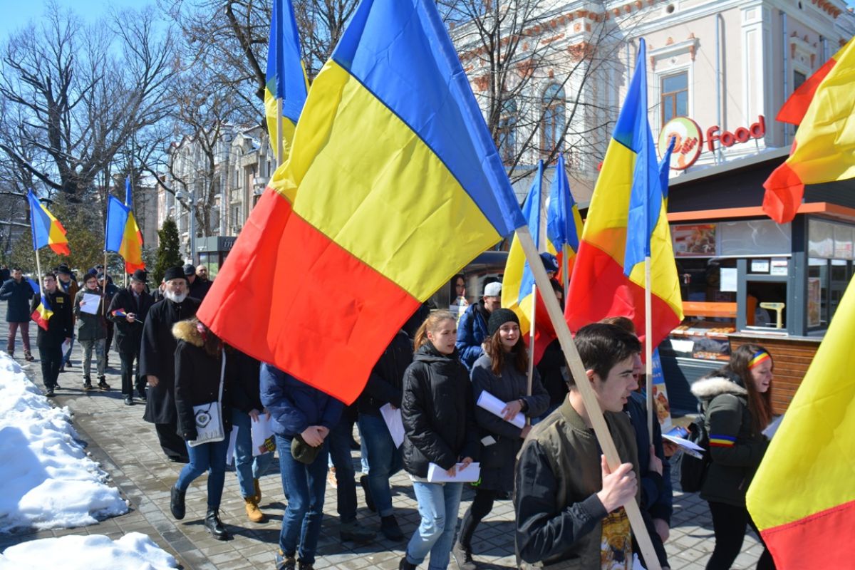 Elevi, pensionari, scriitori şi chiar un preot mărşăluiesc la această prin oraş într-o acţiune de suflet: Unirea Basarabiei cu România.