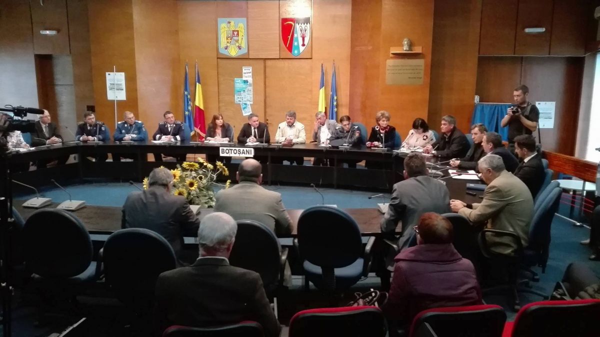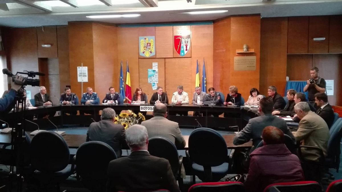 În aceste momente în cea mai importantă clădire a județului s-a întrunit Comitetul Județean pentru Situații de Urgență, structură formată din directori ai instituțiilor deconcentrate și care dezbate problemele urgente ale județului. Iar urgența momentului prezent este situația gunoiului colectat de la aproximativ 300.000 de botoșăneni.