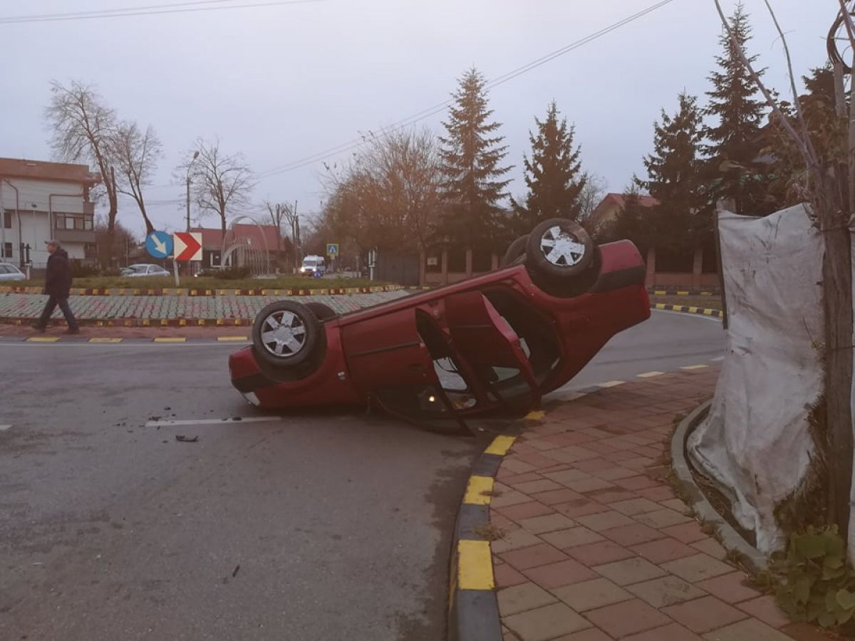 Impactul a fost extrem de puternic, Dacia fiind răsturnată cu roţile în sus pe trotuarul din apropiere.