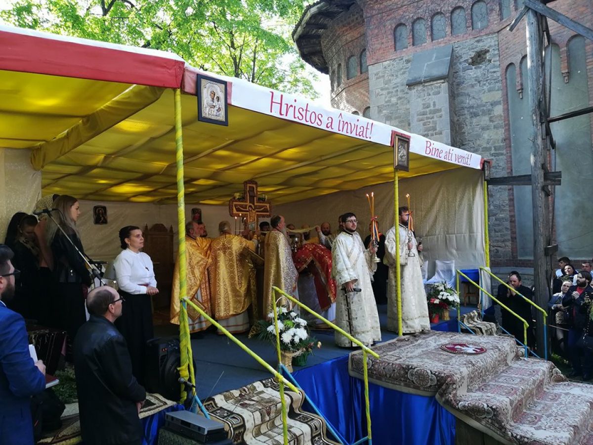 Ceremonialul religios dedicat sărbătoririi apărătorului spiritual al orașului este oficiată de IPS Teofan și un impresionant sobor de preoți. Pe scenă se află și primarul Cătălin Flutur împreună cu viceprimarul Marian Murariu și Adriana Zaiceanu.