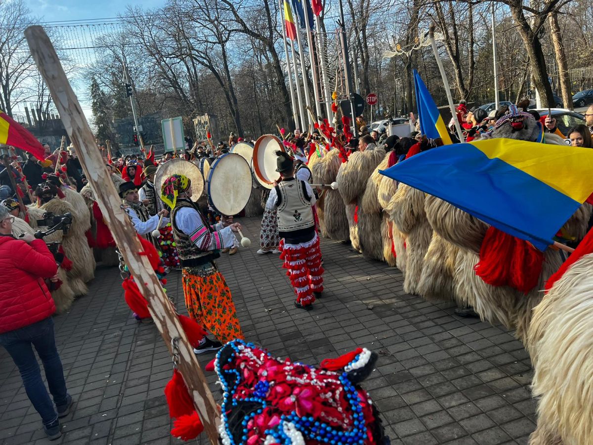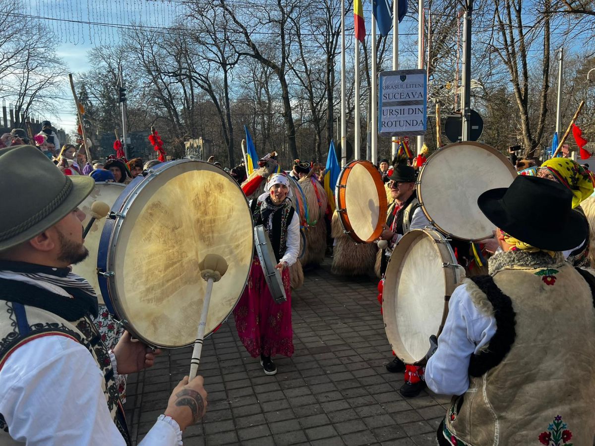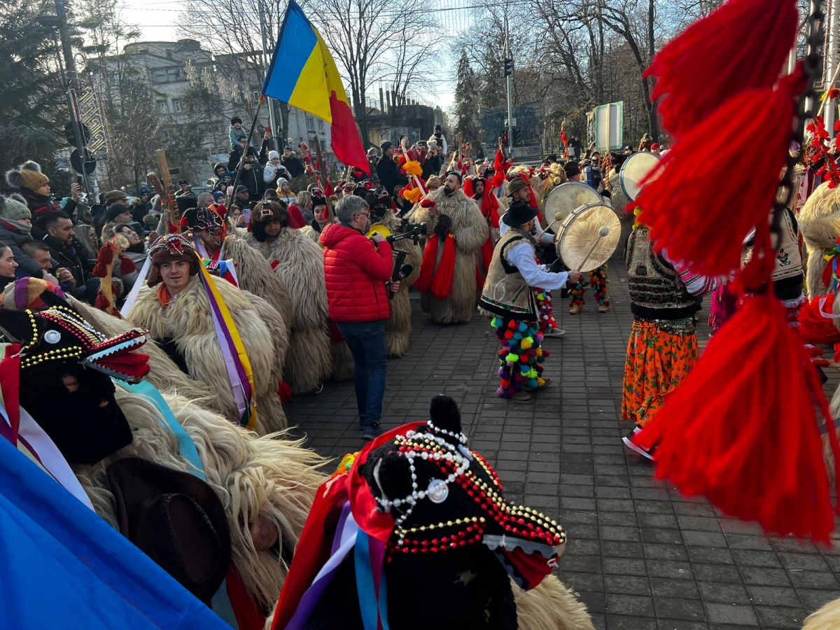 „Urșii” defilează pe Pietonalul Unirii, oferind un adevărat spectacol mistic.