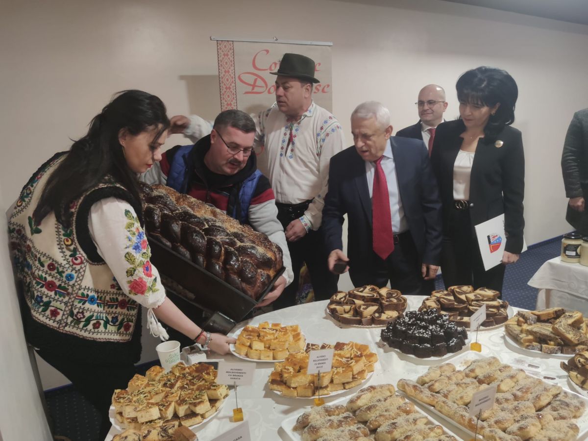 Pe hol au fost amenajate standuri cu produse tradiționale.