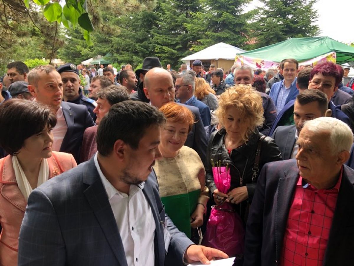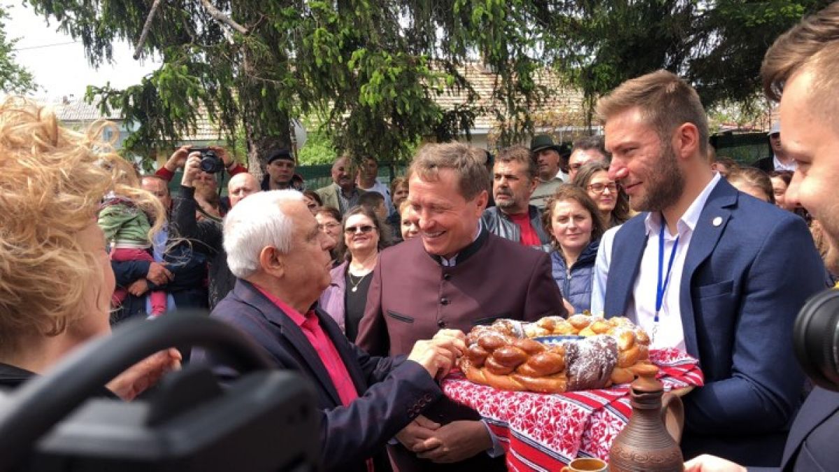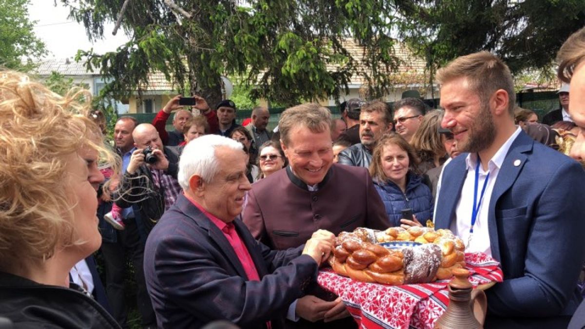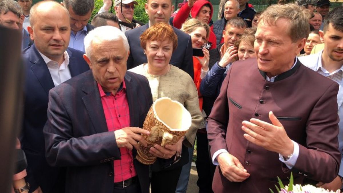 Ministrul fost întâmpinat cu colac, sare și țuică. El a primit cadou o vază lucrată manual.