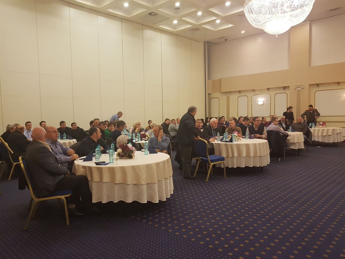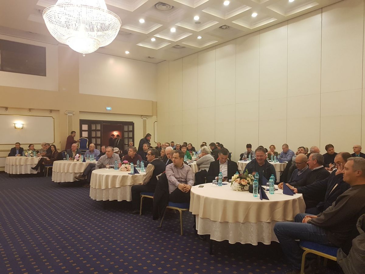 Ședința de lucru are loc în Sala ”Mihai Eminescu” a Hotelului Rapsodia, unde s-au adunat în jur de 100 de medici veterinari.