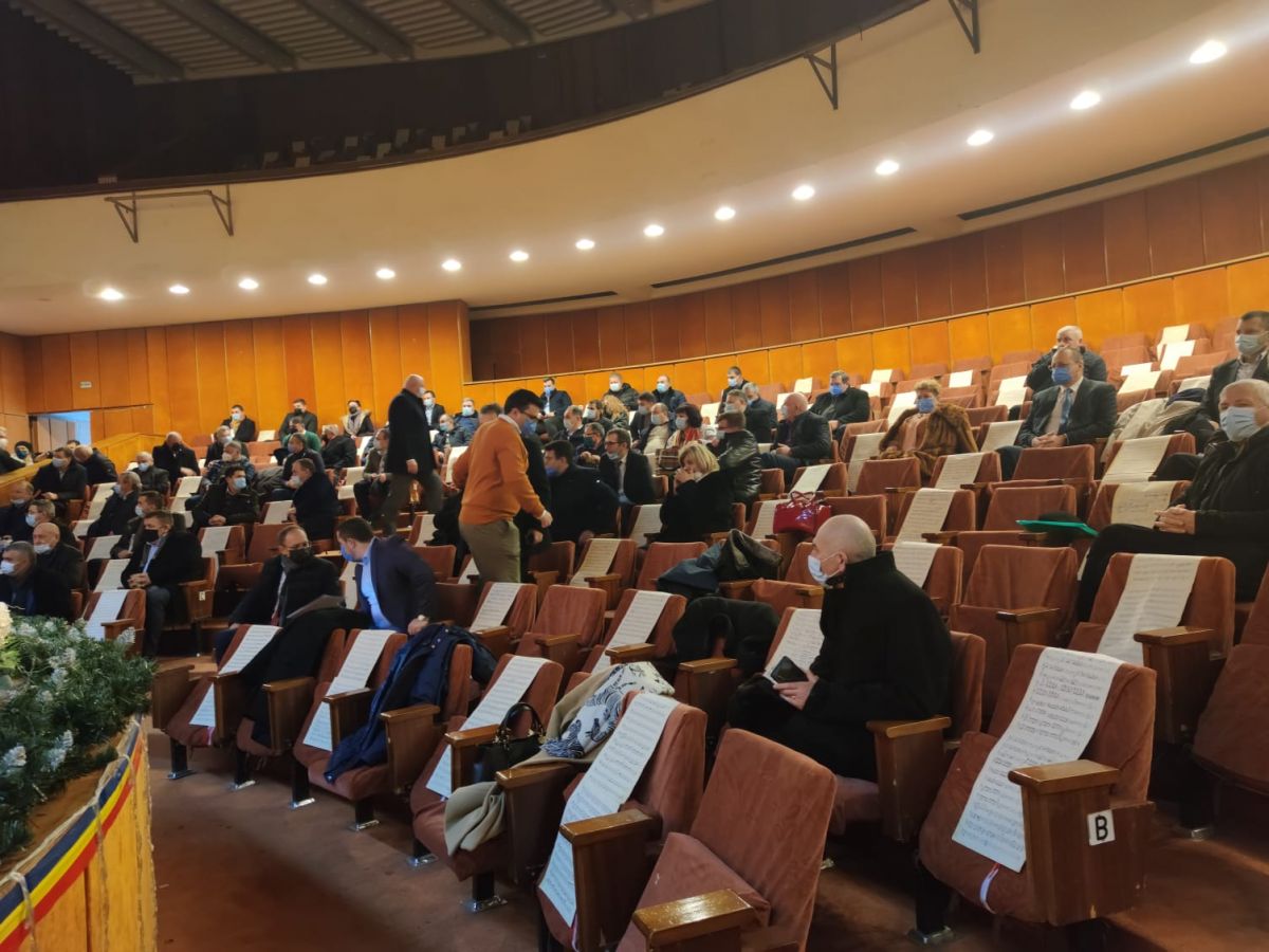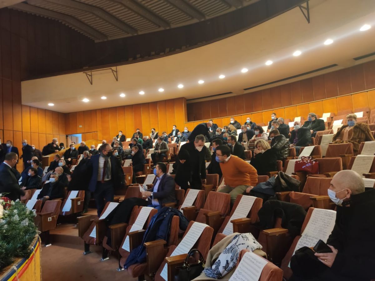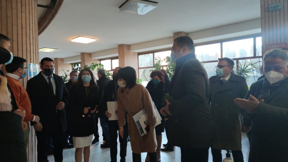 Aici a fost așteptat de deputații PSD Dan Șlincu, Alexandra Huțu, senatorul Lucian Trufin. În sală sunt majoritatea primarilor din județ.