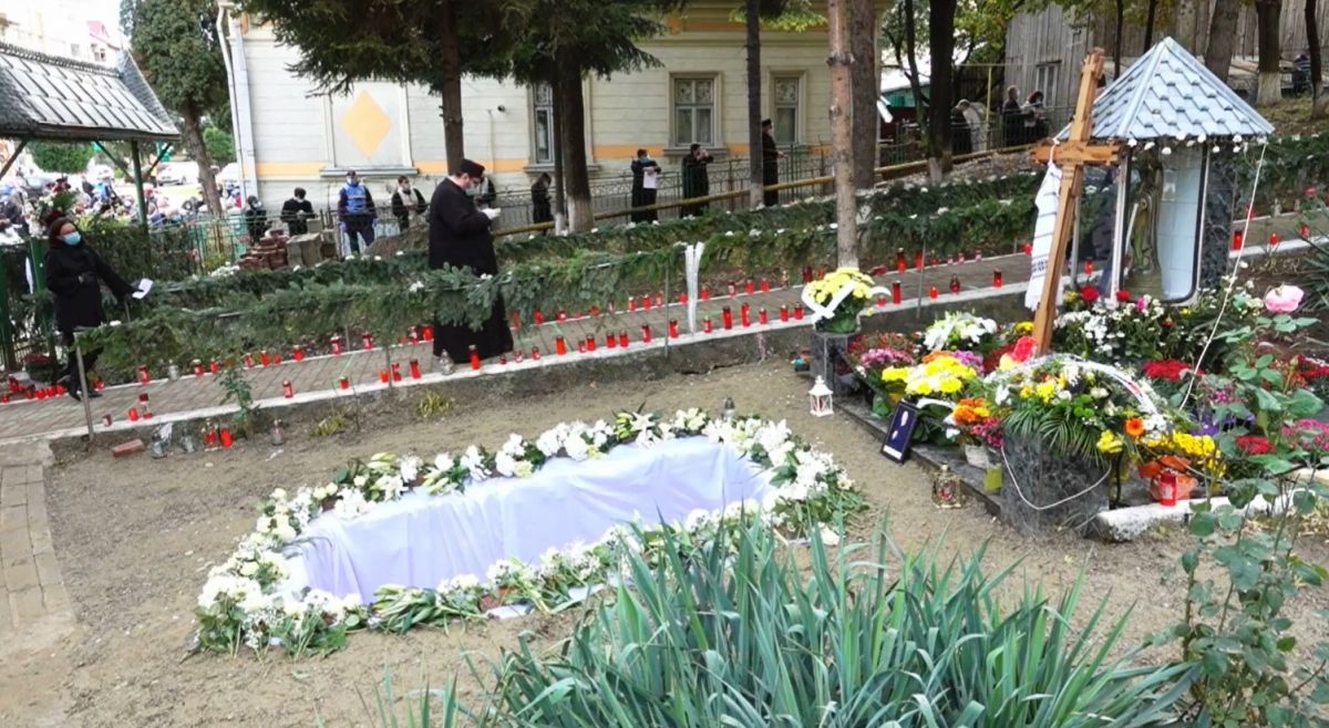 Acolo, la ora 12:00 a început slujba de înmormântare care este oficiată de IPS Teofan, Mitropolitul Moldovei și Bucovinei, împreună cu un sobor de preoți.